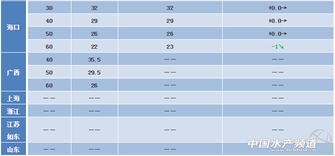 文/粵海飼料集團、中國水產頻道 彭曉君 各產區白對蝦一周價格分析 中國水產頻道原創報道,湛江、海口:本周蝦價小幅波動,基本持平,清明節未明顯拉動市場需求。部分冬棚蝦上市,預計后市平穩下跌。 珠海新會:未見預期中的清明上漲效應,相對比上周反有2元/斤左右的跌幅。 廣西北海:過冬蝦達上市規格尚少,清明節慶帶動,需求旺盛,價格上漲。今年水溫低,冬蝦生長速度比往年慢,加上今年白水蝦投苗比往年遲,預計今年冬棚蝦集中上市時間比往年延后至5月中旬至6月初(白水蝦開始上市前)。 中山:中山區域白蝦冬棚大部分已拆棚,大蝦存塘量少。大部分養殖白蝦區域放苗3——5成左右,番禺放苗3——4成,目前冬棚存塘量不足1成。 汕頭:主要為高位池冬棚蝦,蝦規格主要在50-80條,40條以上大規格蝦量少。蝦存塘量減少,市場蝦需求量減少,本周蝦價相對穩定。 漳州:高位池養殖存塘蝦少,主要存塘大規格蝦在50-80條;蝦存塘量少,病害增加,市場蝦需求量減少。本周蝦價相對穩定。 (多個主產區無成蝦出塘,成交量低,暫停報價) 4月6日全國主產區白蝦塘頭價格 ※上述報價可能會因區域、規格、品質和時間等因素的不同而會產生差異,在此僅供參考。 【關鍵字】:對蝦 對蝦價格 水產養殖 |