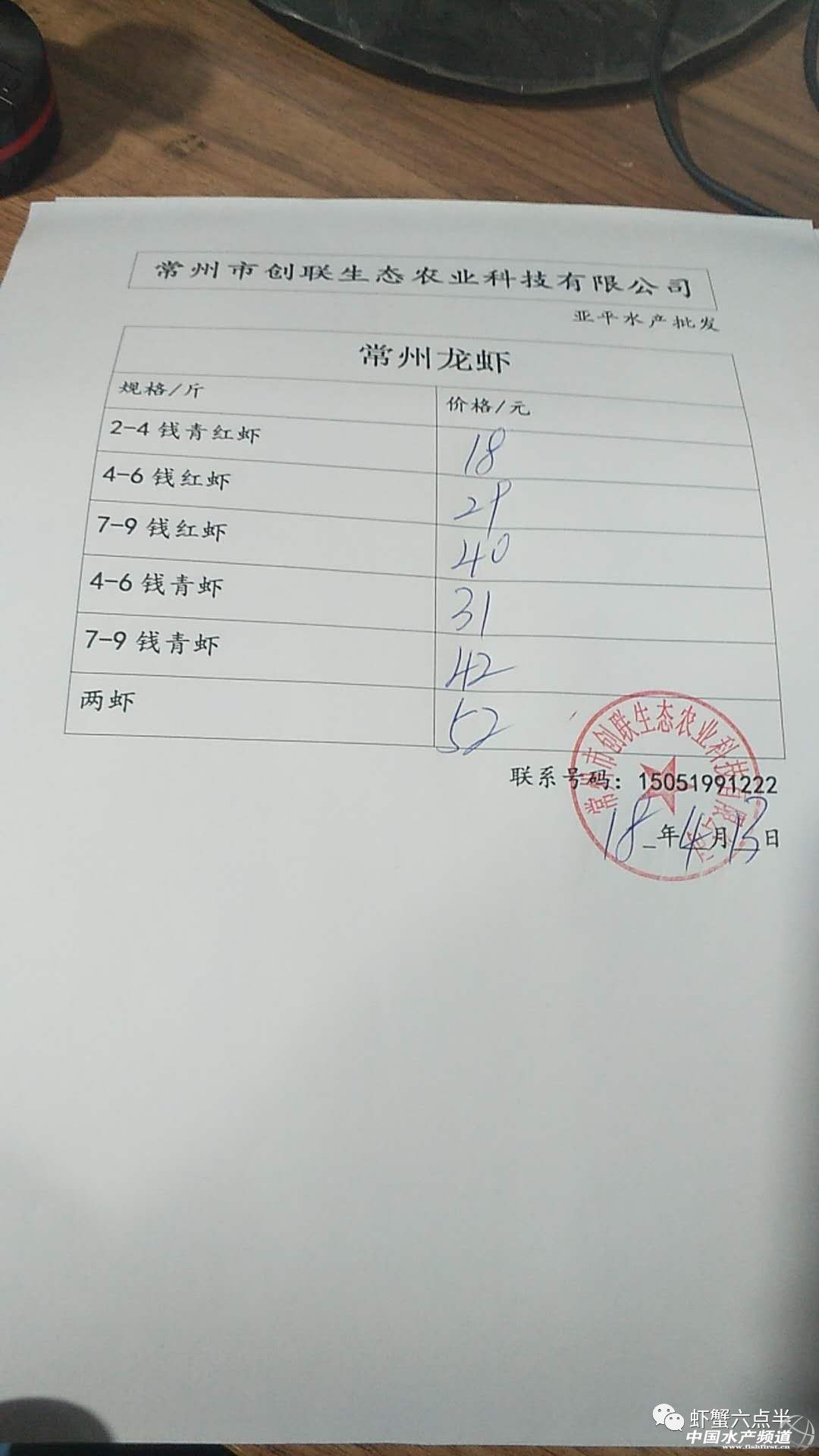 2018年4月13日蝦蟹價(jià)格