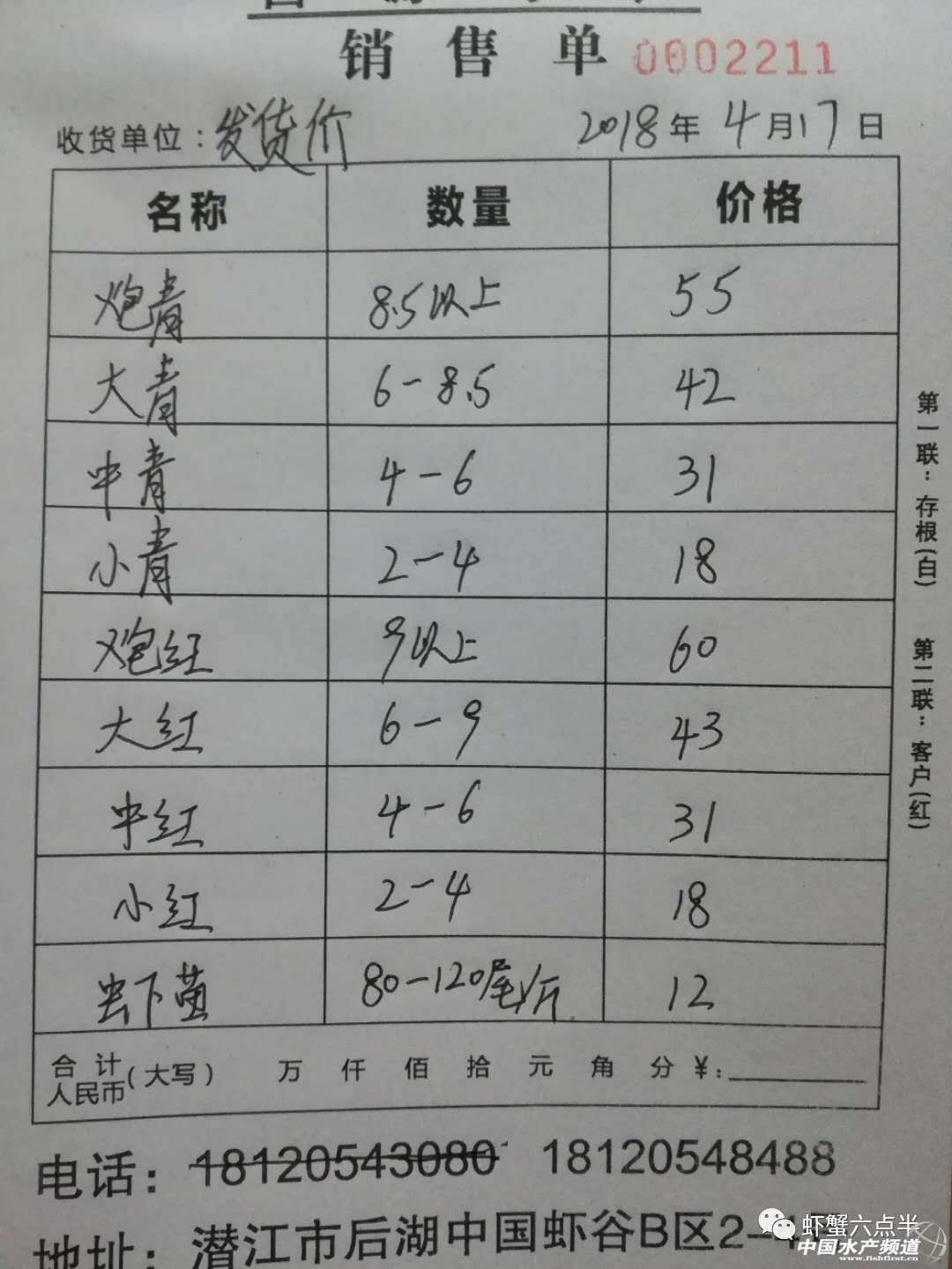 摘要: 2018年4月17日蝦蟹價格