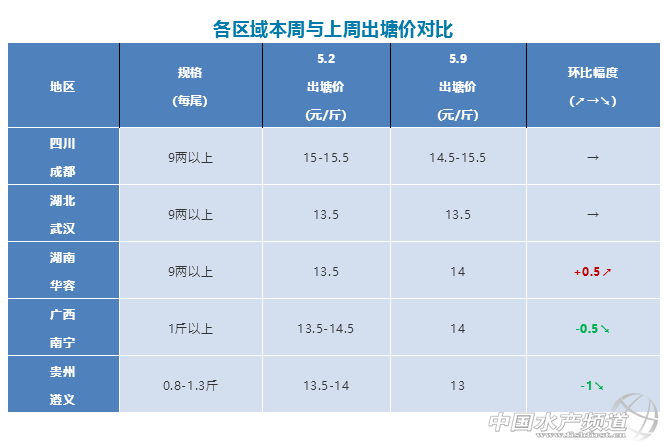 文/圖 杰大飼料 水產(chǎn)前沿實(shí)習(xí)編輯 李曉欣 聯(lián)合發(fā)布 貴州、廣西境內(nèi)多地大規(guī)模拆箱,魚價(jià)沖擊大 目前,貴州烏江、清水江、珠江三大河流庫(kù)區(qū)養(yǎng)殖網(wǎng)箱正大面積清拆,同時(shí)廣西境內(nèi)多地養(yǎng)殖網(wǎng)箱也正被取締清理。一時(shí)之間,不同比例規(guī)格的加州鱸被迫集中上市,貴州、廣西魚價(jià)下跌明顯,其中貴州地區(qū)加州鱸塘頭價(jià)從13.5-14元/斤下跌至13元/斤,廣西地區(qū)魚價(jià)從13.5-14.5元/斤下跌至13元/斤,其他部分省份魚價(jià)上漲勢(shì)頭也受到抑制,業(yè)內(nèi)人士預(yù)計(jì)短期內(nèi)魚價(jià)上漲乏力。 本周各產(chǎn)區(qū)加州鱸行情 廣東順德:今天報(bào)價(jià)7兩上12-12.3元/斤左右,8兩上13.5元/斤。本周8兩上價(jià)格持穩(wěn),7兩規(guī)格看魚的大小比例定價(jià),相比上周價(jià)格略跌了0.2元/斤。近期雨水偏多,塘底較差的魚塘水質(zhì)容易惡化,養(yǎng)戶要注意調(diào)好水質(zhì)以減少應(yīng)激和病害發(fā)生。 廣東南海:今天報(bào)價(jià)7兩上12元/斤左右,8兩上13.5元/斤。本周8兩上價(jià)格持穩(wěn),7兩上規(guī)格相比上周下降了0.5元/斤。目前南海當(dāng)?shù)仞B(yǎng)戶賣魚以8兩上規(guī)格為主,近來天氣反復(fù),產(chǎn)后病等病害易發(fā),部分養(yǎng)殖戶選擇出魚以減少養(yǎng)殖密度,從而降低養(yǎng)殖風(fēng)險(xiǎn)。部分養(yǎng)戶出魚以減少魚塘的超大魚比例,為日后出魚爭(zhēng)取議價(jià)主動(dòng)性。 浙江湖州:今天報(bào)價(jià)8兩上11.5元/斤,統(tǒng)貨報(bào)價(jià)9.5-10元/斤,本周價(jià)格持穩(wěn)。湖州地區(qū)養(yǎng)殖戶目前都在積極統(tǒng)貨出魚,按照目前出魚的速度和情況,預(yù)計(jì)到5月底湖州本地老口鱸魚存塘量會(huì)減少很多。 江蘇吳江:今天報(bào)價(jià)8兩上12-12.5元/斤,9兩上報(bào)價(jià)13元/斤,價(jià)格波動(dòng)不大。目前吳江地區(qū)存塘量仍較大,選擇出魚的養(yǎng)殖戶基本都是挑9兩以上規(guī)格出魚。吳江裝魚的碼頭近來逐步開始營(yíng)業(yè),商品魚收魚量或?qū)⒂兴黾樱A(yù)計(jì)魚價(jià)或會(huì)上漲。 四川成都:今天報(bào)價(jià)9兩上15元/斤,個(gè)別開價(jià)15.5元/斤,根據(jù)出魚頭的大小和大魚比例定價(jià),規(guī)格以9兩-1斤為主的價(jià)格為14.5元/斤。隨著氣溫升高,外地水車到成都收魚減少,由于目前四川存塘量不多且魚產(chǎn)卵后變瘦達(dá)不到規(guī)格,養(yǎng)戶出魚積極性不高,流通商多選擇到貴州那邊收網(wǎng)箱養(yǎng)殖的魚。 湖北武漢:本周魚價(jià)一直維持13.5元/斤,價(jià)格波動(dòng)不大。目前湖北地區(qū)放苗養(yǎng)殖戶有所增多,部分養(yǎng)殖戶在觀望價(jià)格出魚。 湖南華容:今天報(bào)價(jià)9兩以上14元/斤,相比上周價(jià)格上升了0.5元/斤。據(jù)悉,目前這個(gè)價(jià)位仍未達(dá)到當(dāng)?shù)仞B(yǎng)戶的心理預(yù)期,養(yǎng)殖大戶出魚積極性不高,流通商只能找小戶收魚。 廣西南寧:今天報(bào)價(jià)1斤以上14元/斤,相比上周價(jià)格下跌了0.5元/斤。目前廣西多地養(yǎng)殖網(wǎng)箱正被取締清理,魚集中上市導(dǎo)致價(jià)格略有下跌。 貴州遵義:今天0.8-1.3斤規(guī)格報(bào)價(jià)13元/斤,價(jià)格相比上周下降了1元/斤。目前貴州烏江、清水江、珠江三大河流庫(kù)區(qū)養(yǎng)殖網(wǎng)箱正大面積清拆,不同比例規(guī)格的加州鱸被迫集中上市,魚價(jià)下跌明顯。 注:上述價(jià)格及行情分析僅供參考,市場(chǎng)有風(fēng)險(xiǎn),入市需謹(jǐn)慎 【關(guān)鍵字】: 網(wǎng)箱清拆 加州鱸 加州鱸價(jià)格行情 水產(chǎn)養(yǎng)殖網(wǎng) |