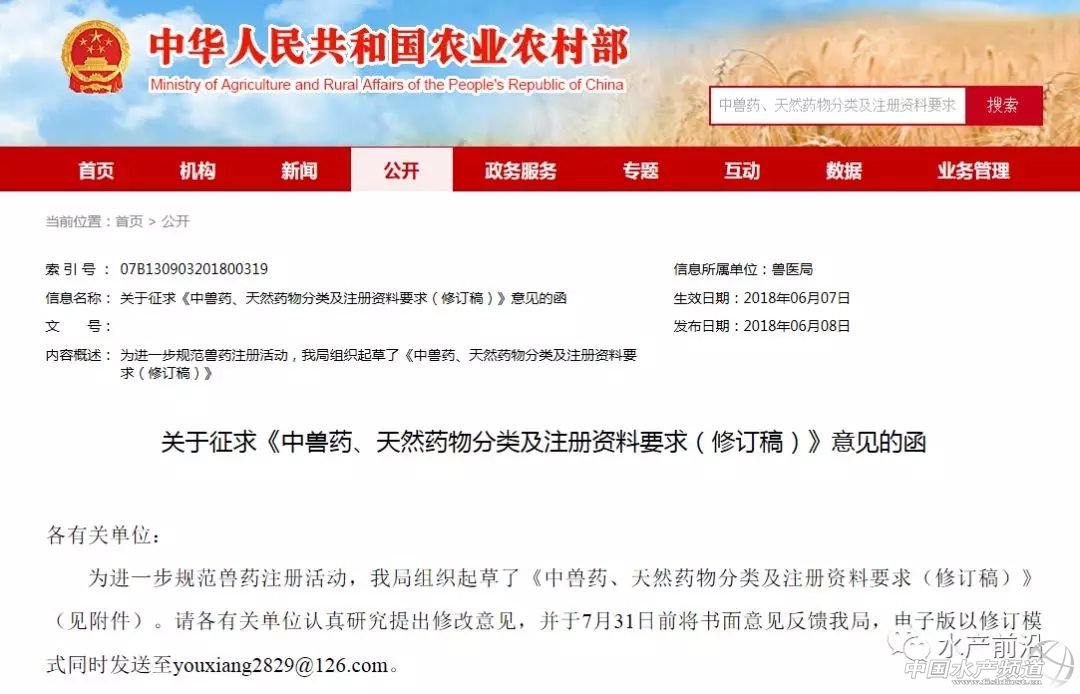 文/圖 水產(chǎn)前沿 何鴻浩 6月8日,農(nóng)業(yè)農(nóng)村部發(fā)文,向有關(guān)單位征求《中獸藥、天然藥物分類及注冊資料要求(修訂稿)》的修改意見。《中獸藥、天然藥物分類及注冊資料要求(修訂稿)》由農(nóng)業(yè)農(nóng)村部獸醫(yī)局組織起草,這份文件的修訂勢必將進一步規(guī)范獸藥注冊活動。中獸藥和天然藥物的重新分類以及注冊資料的要求更改,也將會引起獸藥研發(fā)生產(chǎn)企業(yè)的重視。目前,這份修訂文件仍處于征求意見階段,后續(xù)內(nèi)容我們將會繼續(xù)關(guān)注。 原文: 關(guān)于征求《中獸藥、天然藥物分類及注冊資料要求(修訂稿)》意見的函 各有關(guān)單位: 為進一步規(guī)范獸藥注冊活動,我局組織起草了《中獸藥、天然藥物分類及注冊資料要求(修訂稿)》(見附件)。請各有關(guān)單位認真研究提出修改意見,并于7月31日前將書面意見反饋我局,電子版以修訂模式同時發(fā)送至youxiang2829@126.com。 聯(lián) 系 人:劉元杰 馮梁 聯(lián)系電話:010-59192829 59191652(傳真) 農(nóng)業(yè)農(nóng)村部獸醫(yī)局 2018年6月7日 附件(點擊查看原圖): 【關(guān)鍵字】:農(nóng)業(yè)農(nóng)村部 規(guī)范 獸藥 注冊 水產(chǎn)養(yǎng)殖 |