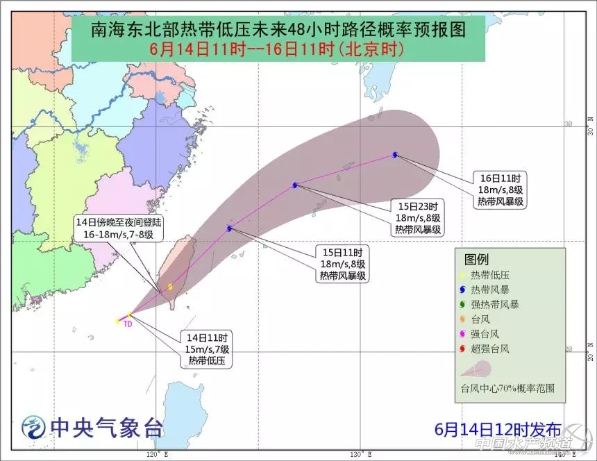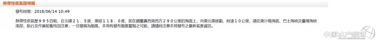 中國水產(chǎn)頻道報道, 南海東北部熱帶低壓生成 6月14日上午,中央氣象臺和日本區(qū)域臺風中心發(fā)布了南海東北部熱帶低壓生成消息。最新監(jiān)測表明,14日上午11時,南海東北部熱帶低壓中心位于距離臺灣省鵝鑾鼻偏西方向約225公里的海面上,也就是北緯21.7°,東經(jīng)118.7°,中心附近最大風速15米/秒(7級風),中心最低氣壓994百帕。 中央氣象臺預計該熱帶低壓將以每小時15-20公里的速度繼續(xù)向東北方向移動,很可能于今天傍晚島夜間登陸我國臺灣東南部沿海地區(qū),然后穿過臺灣島進入東海南部海域,進入東海后強度還將有所加強。隨后,它將沿著琉球群島繼續(xù)向東偏北方向移動。 中央氣象臺6月14日12時發(fā)布的南海東北部熱帶東亞未來48小時路徑概率預報圖。 南海北部和東海南部海域群“渦”亂舞 葵花-8號衛(wèi)星6月14日13時40分監(jiān)測到的目前位于西北太平洋和我國南海海域的幾大熱帶系統(tǒng)。 昨天的推文分析了南海東北部的熱帶擾動93W未來的動向,實際上當前位于南海的西南季風十分強盛,有多個渦旋在季風槽內(nèi)涌動。 正是由于這種季風槽中群“渦”亂舞的態(tài)勢,使得各官方臺風預測機構(gòu)的分析意見似乎出現(xiàn)了寫分歧:美國聯(lián)合臺風警報中心今早將昨天提到的熱帶擾動93W升格到了熱帶低壓,他們認為這個熱帶低壓在14日上午08時已經(jīng)移動到了我國東海南部海域附近,并繼續(xù)認為它有加強為臺風的可能性。于此同時,美國聯(lián)合臺風警報中心將位于我國南海東北部的系統(tǒng)命名為熱帶擾動95W,而我國中央氣象臺、我國臺灣氣象部門、香港天文臺和日本東京區(qū)域臺風中心卻認為95W的強度已經(jīng)達到了熱帶低壓級別。 美國聯(lián)合臺風警報中心6月14日11時發(fā)布的熱帶低壓未來移動路徑概率圖。 香港天文臺6月14日11時45分發(fā)布的熱帶低壓消息。 我國臺灣氣象部門6月14日10時49分發(fā)布的熱帶低壓消息。 未來幾天這個強盛的西南季風槽內(nèi)有可能仍將孕育出1-2渦旋,并有可能分別獨自加強。這些渦旋與先前的93W(目前位于東海南部)和南海東北部熱帶低壓類似,將持續(xù)向東北方向移動。它們之中最有可能加強為臺風的是現(xiàn)在的南海東北部熱帶低壓,不過由于西風帶急流已經(jīng)南壓到了我國臺灣北部附近,北緯20°以北區(qū)域垂直風切較大,這個南海東北部熱帶低壓也有一定概率提前變性成為溫帶氣旋。 美國國家大氣環(huán)境預測中心全球模式預測的未來幾天850hPa渦度和風場動態(tài)演示圖。 今年第6號臺風格美即將生成! @中央氣象臺:#低壓生成消息# 南海東北部熱帶低壓8點鐘中心位于臺灣鵝鑾鼻西偏南方向約290公里的海面上(北緯21.4度,東經(jīng)118.1度),中心附近最大風力15m/s。預計,該低壓將以每小時15-20公里的速度向東偏北方向移動,今天白天強度將有所增強,即將于今天傍晚到夜間在臺灣西南部沿海登陸(熱帶低壓到熱帶風暴級,7-8級,16-18m/s),今天夜間穿過臺灣,明天白天進入臺灣以東洋面,趨向日本以南洋面,逐漸變性為溫帶氣旋。 低壓生成消息 【今年第6號臺風格美即將生成!】昨夜今晨,位于粵東近海的新熱帶擾動95W結(jié)構(gòu)發(fā)展迅速,日本氣象廳已于今天凌晨發(fā)布烈風警告(GW),提示今年第6號臺風格美可能即將在一天內(nèi)在我國粵東閩南近海突然生成。這是個梅雨鋒發(fā)展而來的熱帶低壓,因此水汽非常充沛,它可能會給臺灣帶來猛烈降雨,而廣東福建近海的人們也要注意防范海上強風。 今年第6號臺風格美即將生成! 今年第6號臺風格美衛(wèi)星云圖 未來三天全國重點天氣預報 1. 云南海南臺灣將有較強降水 預計14日——15日,海南島、云南西北部和東部、西藏東南部、臺灣等地的部分地區(qū)有大到暴雨,局地有大暴雨。 2. 東北多雷雨局地強對流 未來一周,東北地區(qū)、內(nèi)蒙古東部等地多陣雨和雷陣雨,局部地區(qū)有冰雹和雷暴大風等強對流天氣。 預計6月14日08時至15日08時,江蘇中部等地仍需防范局地的雷暴大風或冰雹天氣;此外,黑龍江西部、遼寧南部、山東半島、江蘇中部、云南西北部及東南部、廣西南部、廣東南部、海南等地將有短時強降水天氣,最大小時降水量20——40毫米,局地可達50毫米。 三、未來三天具體預報 6月14日08時至15日08時,東北地區(qū)有對流性天氣,云南海南臺灣等地有較強降水。內(nèi)蒙古東北部、黑龍江西部、吉林西部和東南部、遼寧中東部、山東半島東部、江淮中東部等地有中到大雨,黑龍江西北部、遼寧東南部等地局地有暴雨,上述部分地區(qū)伴有雷暴大風、冰雹等強對流天氣;西藏東南部、云南西北部和東部、雷州半島、海南島中北部以及臺灣等地的部分地區(qū)有大到暴雨,海南島北部、臺灣南部等地局地有大暴雨(100——180毫米)(見圖1)。 圖1 全國降水量預報圖(6月14日08時-15日08時) 6月15日08時至16日08時,內(nèi)蒙古東北部、海南島等地有較強降水。內(nèi)蒙古東北部、黑龍江中西部、新疆伊犁河谷、四川西部、西藏東南部、云南西北部和南部、廣西南部、雷州半島、海南島以及臺灣中東部等地有中到大雨,其中,西藏東南部、海南島中北部等地的部分地區(qū)有暴雨,局地大暴雨(100——120毫米),上述局地將伴有短時強降水、雷暴大風或冰雹等強對流天氣(見圖2)。 圖2 全國降水