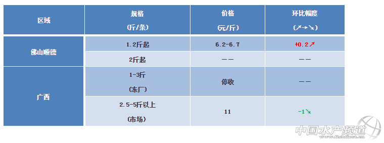 佛山順德區域:魚價穩中略漲,養殖病害有出血,爛鰓。
