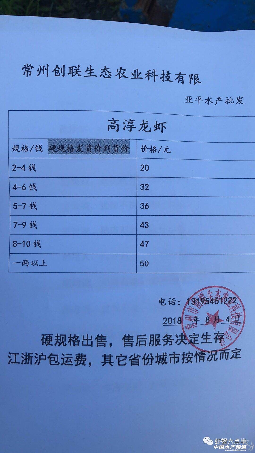 中國水產(chǎn)頻道報道, 報價是為了讓養(yǎng)殖戶能早點了解價格信息,根據(jù)行情盡量賣個好價錢。希望養(yǎng)殖戶朋友也能參與報價,提供價格信息,讓更多的人能更快更早的了解當天行情 2018.8.4 龍蝦 六月黃 【關(guān)鍵字】:蝦 蟹 價格 水產(chǎn)養(yǎng)殖 |