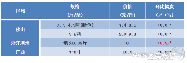 中國水產頻道原創報道, 黃顙魚 佛山區域:本周魚價穩定。目前黃顙魚新魚存塘量大,今年放苗少,成數低,天氣變化大小苗病害多。近期病害嚴重主要腸炎,爆頭,爛身,爆發性出血,腹水等。 浙江湖州:較上周價格穩定上漲0.5元/斤,市場存塘量開始減小,需求量在增加,近期價格一直回升,達到成本線,市場行情依然很低,預期后期價格仍上漲。 廣西區域:近期氣溫炎熱,黃顙魚病害多,耐運輸能力差,本周價格持平。 【關鍵字】:黃顙魚 塘頭價 水產養殖 |