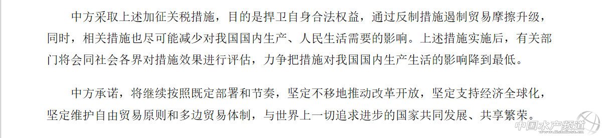 中國水產頻道綜合整理報道, 8月3日,中國宣布決定對原產于美國的5207個稅目進口商品加征關稅。該措施涉及自美進口貿易額約600億美元。 6月15日,美國政府發布了加征關稅的商品清單,將對從中國進口的約500億美元商品加征25%的關稅。 6月16日,國務院關稅稅則委員會決定對原產于美國的659項約500億美元進口商品加征25%的關稅,其中545項約340億美元商品自2018年7月6日起實施加征關稅. 美國東部時間7月6日凌晨,美國對來自中國的818種、340億美元金額產品加征25%關稅。 北京時間7月6日中午12時起,中國對原產美國的農產品、汽車、水產品等545項商品,規模總計340億美元的進口商品加征25%關稅。 據央視新聞客戶端消息,2018年7月11日,美國政府發布了對從中國進口的約2000億美元商品加征10%關稅的措施。8月2日,美國貿易代表聲明稱擬將加征稅率由10%提高至25%。美方背離了雙方多次磋商共識,單方面再次升級了貿易戰,嚴重違反世界貿易組織規則,破壞全球產業鏈和自由貿易體制,實質性損害了我國國家和人民利益,也將對包括美國在內的世界經濟發展造成負面影響。 針對美方上述措施,中方被迫采取反制措施。根據《中華人民共和國對外貿易法》《中華人民共和國進出口關稅條例》等法律法規和國際法基本原則,經國務院批準,國務院關稅稅則委員會決定對原產于美國的5207個稅目約600億美元商品,加征25%、20%、10%、5%不等的關稅。如果美方一意孤行,將其加征關稅措施付諸實施,中方將即行實施上述加征關稅措施。 附件 原文注:商品名稱僅供參考,具體商品范圍以2018年《中華人民共和國進出口稅則》中的稅則號列對應的商品范圍為準。 編者注:因附件2、附件4未涉及水海產品,本文未列出; 附件3中“第三章”指魚、甲殼動物,軟體動物及其他水生無脊椎動物,稅則號列以03開頭。 商務部新聞發言人發表談話 商務部新聞發言人表示,中方的差別化稅率反制措施是理性和克制的,是在廣泛聽取意見、認真評估影響后提出的,特別是充分考慮了人民的福利、企業的承受力和維護全球產業鏈運轉等因素。征稅措施的實施日期將視美方行動而定,中方保留繼續出臺其他反制措施的權利。中方始終認為,在相互尊重、平等互利的原則基礎上進行協商,才是解決貿易分歧的有效途徑,任何單邊的威脅或訛詐只會導致矛盾激化,損害各方利益。 中方再次強調,由于美方不顧雙方企業和消費者利益,一再升級事態,中方不得不采取必要的反制措施,以捍衛國家尊嚴和人民利益,捍衛自由貿易和多邊體制,捍衛世界各國共同利益。 不管美方怎么折騰,中國的決心沒有變,將繼續按照既定部署,堅定不移地推進改革開放。根據剛剛召開的中央政治局會議,中國將繼續落實擴大開放、大幅放寬市場準入的重大舉措,推動共建“一帶一路”向縱深發展,精心辦好首屆中國國際進口博覽會,繼續堅定不移地將改革開放推進下去。會議還強調,保護在華外資企業合法權益。開放的中國愿與世界各國一道,堅定不移地維護自由貿易原則和多邊貿易體制。(本段選自《美國威脅施壓達不到目的》新華社) 水產企業需積極應對貿易戰 關于中美貿易戰相關文章網上已經很多,國家層面、戰略層面的分析都有。現在,我們撇開這些高大上的言論,就來分析下我們水產行業如何應對,普通的出口企業應該怎么辦。 從近幾十年來中國海產市場快速發展歷程來看,這個巨大的消費市場從來不缺供應方,一些貿易代表表示如果美國失去中國市場,那么其份額將很快被其他國家所占領,這種情況是有先例的,而且一旦失去市場準入那么在進入就很難。 據統計,根據國家海洋漁業服務管理局(NMFS)數據,中國是美國第二大海產品供應國,僅次于加拿大。2017年中國對美國海產品出口額達27億美元,加拿大對美國海產出口額為33億美元。 2017年在美國進口中國水產品中,羅非魚以4.26億美元排名第一,其次是蝦類產品進口額為3.35億美元。 轉載聲明 本文轉自【新華社、中華人民共和國財政部、證券時報、每日經濟新聞、海鮮指南、食材交易會】。如有版權問題,敬請聯系wx@fishfirst.cn。 【關鍵字】:貿易戰 中國 美國 水產養殖 |