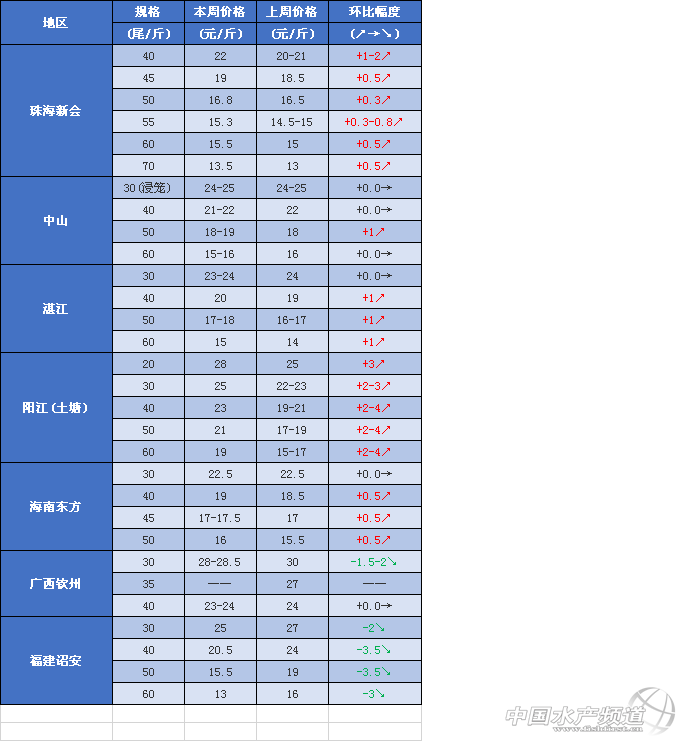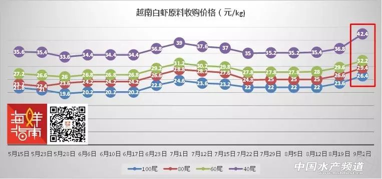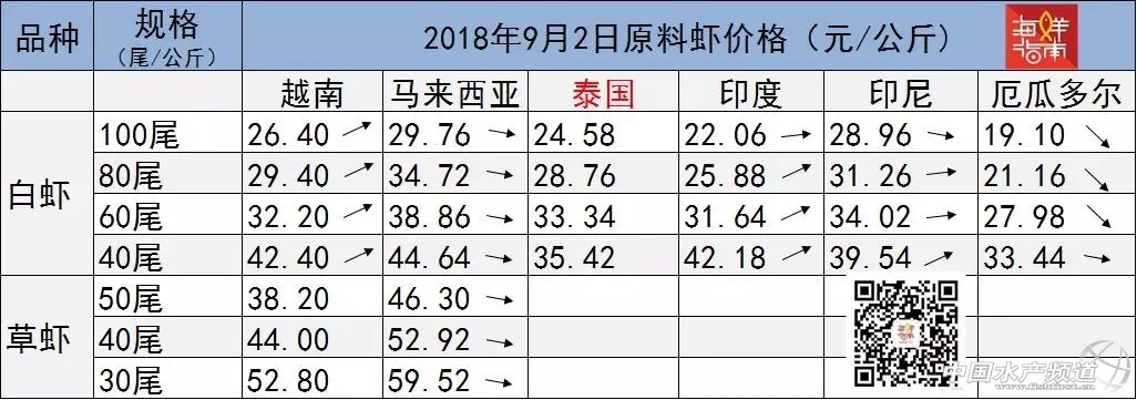 文/圖 海鮮指南(seafood-guide) 張麗麗、陳磊 海外白蝦原料收購價格 上周日(2018年9月2日)全球白蝦主產(chǎn)區(qū)原料價格波動劇烈,其中,越南、印度、印尼三地大規(guī)格蝦猛漲(40尾/公斤) ,其他規(guī)格也出現(xiàn)不同程度上漲,而厄瓜多爾、馬來西亞兩地蝦價卻在下跌。具體如下: 表1 2018年9月2日海外白蝦原料收購價格 注:以上產(chǎn)品為當(dāng)?shù)匚r類的塘頭收購價,匯率按當(dāng)?shù)刎泿艑崟r兌換人民幣計算 越南白蝦價格大幅上揚。與兩周前相比,9月2日60、80、100尾/公斤的越南白蝦漲幅為2.6-2.8元/公斤,大規(guī)格原料40尾/公斤的漲幅高達5.6元/公斤,自5月以來首次突破40元/公斤。 5月15日至9月2日越南白蝦原料收購價格走勢(來源:海鮮指南) 厄瓜多爾白蝦顯著回落。與兩周前相比,9月2日各規(guī)格多爾蝦出現(xiàn)不同程度下跌,100尾/公斤降幅為1.5元/公斤,80尾/公斤降幅為3.6元/公斤,60尾/公斤的降幅為2.3元/公斤,40尾/公斤降幅為0.2元/公斤,相對較小。 5月15日至9月2日厄瓜多爾白蝦原料收購價格走勢(來源:海鮮指南) 印度白蝦小幅回落。與兩周前相比,9月2日印度100尾/公斤小幅上漲0.5元/公斤,規(guī)格越大,上漲越明顯,80尾/公斤漲幅為2.7元/公斤,60尾/公斤漲幅為6.0元/公斤,40尾/公斤兩周漲幅高達7.8元/公斤,突破40元/公斤。 5月15日至9月2日印度白蝦原料收購價格走勢(來源:海鮮指南) 馬來西亞小幅下跌。與兩周前相比,馬來西亞自6月下旬以來蝦價一直穩(wěn)中有漲,但漲幅較小,多數(shù)漲幅在1.0元/公斤以內(nèi),偶有突破。9月2日首次出現(xiàn)全規(guī)格小幅下跌的情況,但下滑幅度不大,在0.5-0.7元/公斤范圍內(nèi)。即便如此,與其他國家橫向?qū)Ρ龋纫?guī)格下馬來西亞白蝦原料性價比依然不如其他產(chǎn)區(qū)高。 印尼大規(guī)格蝦大幅上漲,其他規(guī)格基本穩(wěn)定。與兩周前相比,9月2日印尼100尾/公斤白蝦小幅下跌,降幅為0.4元/公斤,其他規(guī)格均有上漲,80尾/公斤漲幅為0.2元/公斤,60尾/公斤漲幅為0.6元/公斤,40尾/公斤漲幅為5.2元/公斤,塘頭收購價接近40元/公斤。 9月5日國產(chǎn)白蝦塘頭價,詳情如下: 國產(chǎn)南方白對蝦 存塘量驟減,蝦價穩(wěn)中漲 華南主產(chǎn)區(qū)白蝦塘頭價 珠海、新會:本周蝦價40頭22元/斤,45頭19元/斤,50頭16.8元/斤,60頭15.5元/斤,70頭13.5元/斤,整體蝦價略有上漲,近期行情好轉(zhuǎn)。或因臺山、斗門水浸,魚蝦大逃,存塘量進一步縮減,市場好市,長途車補倉,紛紛抬價收蝦。近日,外地蝦價低,長途車開始向外抓蝦,本地蝦不多,蝦價后市穩(wěn)定為主。 海南:本周蝦價30頭22.5元/斤,40頭19元/斤,45頭17-17.5元/斤,50頭16元/斤,整體蝦價上漲0.5元/斤。大規(guī)格蝦存塘量少,有業(yè)者說道:整個海南都缺蝦!(中造剩余的大蝦) 陽江:本周蝦價20頭28元/斤,30頭25元/斤,40頭23元/斤,50頭21元/斤,60頭19元/斤,整體蝦價上漲2-4元/斤,前提活蝦質(zhì)量好,質(zhì)量差的低1-2元/斤。體色好、無空腸空胃、活力好,蝦的價格相對漲勢明顯。 廣西:本周蝦價30頭28-28.5元/斤,40頭23-24元/斤,蝦價稍有波動下跌。近期發(fā)病較多,白便、偷死現(xiàn)象普遍,30頭規(guī)格蝦要漂亮蝦色的才有高價30元/斤。 福建:本周蝦價30頭25元/斤,40頭20.5元/斤,50頭15.5元/斤,60頭13元/斤,整體蝦價下跌2-3元/斤。近期蝦價行情不好,蝦價持續(xù)下滑,預(yù)計到中秋節(jié)前會有所回升。養(yǎng)殖情況:前些天一直在下雨,近些天忽而高溫,外塘發(fā)病率較高。 表2 華南主產(chǎn)區(qū)白蝦塘頭價 華東地區(qū)白蝦塘頭價 浙江:本周蝦價30頭20-21元/斤,40頭19元/斤,50頭17元/斤,60頭15元/斤,整體活水蝦價格穩(wěn)中偏低價。由于臺風(fēng)天氣,雷陣雨頻繁,加之降溫溫差大,隨之病蝦上市量劇增,蝦價依然遭壓。冰鮮蝦價格:40頭15.5-16元/斤打樣。 江蘇:本周蝦價30頭21元/斤,40頭19元/斤,50頭17元/斤,60頭15元/斤,整體蝦價穩(wěn)定,略有波動下跌趨勢。目前中小規(guī)格蝦上市量大,春造蝦、秋造蝦集中出蝦,養(yǎng)殖發(fā)病情況普遍,基本為看蝦質(zhì)抬價。 表3 華東地區(qū)白蝦塘頭價 國產(chǎn)北方白對蝦 病蝦上市高峰,蝦價下滑 華北、東北地區(qū)白蝦塘頭價 河北:本周蝦價30頭19元/斤,35頭17元/斤,40頭16元/斤,唐山、黃驊地區(qū)多塘口提前半個多月出蝦,多為病蝦且規(guī)格不大,整體價格下滑1-2元/斤。冰蝦價格:30頭18元/斤,40頭16元/斤。 天津:寶坻、武清地區(qū)基本已清塘接近尾聲,其他地區(qū)-津南、大港仍少蝦出,上千畝望子塘目前正收尾。本周蝦價30頭19.5元/斤,40頭17元/斤,這種中小規(guī)格蝦價格不理想,河南、東北市場偏愛20頭大規(guī)格蝦。冰蝦價格:塘頭價30頭18.2-18.5元/斤,40頭16.2-16.5元/斤,隨著唐海蝦大量上市,冰蝦價格或受影響將下跌。 遼寧營口:本周蝦價20頭23元/斤,25頭20-20.5元/斤,30頭18元/斤,40頭14.5-15元/斤,整體蝦價下滑1元/斤,繼上周下跌后再下跌一波。塘口隨著養(yǎng)殖時間的延長產(chǎn)量大增,出蝦量大,目前處于出蝦高峰期,加之急于出塘的病蝦量也多,導(dǎo)致蝦價下滑。冰蝦價格:100頭7.5元/斤,返頭1毛錢/頭。 表4 華北、東北地區(qū)白蝦塘頭價 海外草蝦收購價格行情 與兩周前相比,越南草蝦價格平穩(wěn)。9月2日30、40、50尾/公斤各規(guī)格漲幅在0.2-0.4元/公斤范圍內(nèi)。 5月15日至9月2日越南草蝦收購價格走勢(來源:海鮮指南) 與兩周前相比,馬來