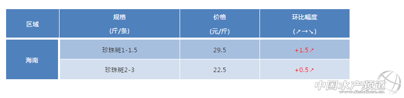 中國水產頻道原創獨家報道,海南區域:養殖開始出現蟲害和細菌病,魚價連續兩周上下波動。