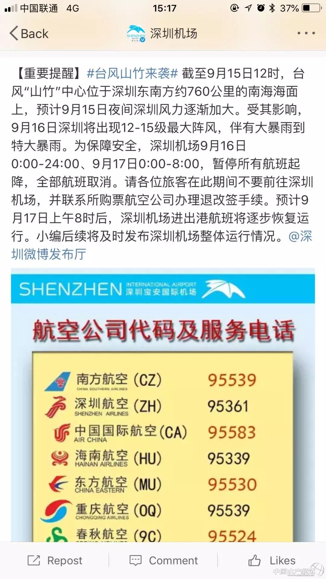 中國水產頻道原創報道,超強臺風“山竹”已離開菲律賓,預計16日下午到晚上將在廣東珠海到湛江一帶沿海登陸(14-16級,45-52米/秒,強臺風級或超強臺風級),登陸后將繼續向西偏北方向移動,強度逐漸減弱。 預計到今天(16日)晚上,廣東、香港、澳門、福建東南部、廣西東部、海南大部、浙江東南部及臺灣中東部等有大到暴雨。其中,廣東中南部、香港、澳門、臺灣島東部等地部分地區大暴雨,局地特大暴雨(250-280毫米)。 受其影響,深圳機場9月16日0:00-24:00、9月17日0:00-8:00,暫停所有航班起降,全部航班取消。預計9月17日上午8時后,深圳機場進出港航班將逐步恢復運行。 此外,在海鮮指南的三文魚行情交流群里,群友也轉發了中國南方航空的動態消息: 受此影響,未來幾天內,華南地區冰鮮三文魚預計無法正常到貨,且因智利國慶節假日,智利三文魚到貨量暫不明確,三文魚價格持續上漲。 截止到9月15日晚間,海鮮指南當天收到的報價已經更新了三次,上海的價格也應勢上漲,有業者笑稱“上海魚拉(去)廣州了,然后漲價了”。 9月15日晚廣州部分進口商/經銷商還在陸續到貨,但市場總體貨量并不算多。 從海鮮指南收到的報價單來看,市場上部分進口商/經銷商還有8月底、9月初的報價,9月6日以前的貨差不多出完,新貨以9月10日左右為主。 以上報價由海鮮指南獨家搜集整理發布,未經授權不得轉載 目前,北京市場法羅群島三文魚新日期價格100元以上/公斤,挪威報價也達到了100元/公斤,智利魚最高報價94元/公斤,澳魚報價高達90元/公斤。 上海市場法羅群島三文魚105元/公斤,挪威魚報價96元以上/公斤,智利魚報價85元以上/公斤,澳魚新日期報價87元/公斤。 廣州市場法羅群島三文魚報價105元以上/公斤,挪威魚實際成交價92-96元/公斤,智利魚80-84元/公斤,澳魚報價80元以上/公斤。 【關鍵字】:三文魚 三文魚價格 水產養殖 |