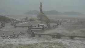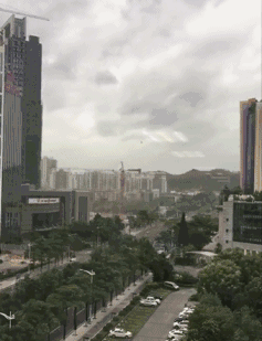 9月16日上午9時50分,惠州博羅縣城北門路,驟起的狂風將街頭大樹連根拔起。