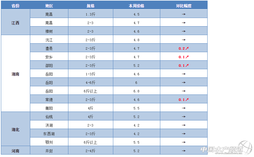 一周要聞 中國水產頻道原創獨家報道,1、每年,看景點排隊和高速堵車已經成為國慶節必不可少的“節目”,這兩天很多的車都被堵在路上。由于去年國慶期間就有大批魚被堵在路上,所以今年大部分流通商都選擇了錯峰出行。剛剛從朋友圈了解到,京昆高速青龍埡隧道內發生了多車連撞事故,希望魚車司機朋友多注意行車安全。 2、據養殖戶介紹,今天廣西貴港地區草魚行情開始出現好轉,目前草魚的流通量出現明顯增加,價格也出現0.2元左右的上漲。以往當地2斤的草魚基本無人問津,而最近隨著市場需求拉動,2斤的草魚也開始受歡迎了。 今日行情 華南地區 隨著國慶假期的到來,本周華南地區草魚整體上的流通量出現明顯增加,但是目前價格行情變化不大。其中,珠三角地區草魚苗種價格繼續保持上漲勢頭,廣西貴港地區草魚價格出現明顯上漲。 江門:據養殖戶介紹,目前江門地區的草魚行情仍然比較低迷,最新草魚價格沒有明顯變化。 中山:本周中山地區的草魚苗種價格繼續保持上漲勢頭。目前,1-3兩草魚最新塘頭價5.4元/斤,2-5兩賣到5.1元/斤,3-7兩最新報價4.9元/斤。大規格苗種的價格較上周繼續有0.1元左右的上漲。 肇慶:流通商表示,雖然十一這兩天很多地方都是在堵車,但是市場并沒有出現明顯缺魚的現象,目前價格行情還是以穩定為主。 廣西:據養殖戶介紹,這兩天廣西部分地區的草魚價格漲了。目前,貴港地區草魚最新裝車價5.8元/斤,較之之前上漲了0.2元左右。隨著市場需求開始旺盛,目前2斤的草魚也開始受歡迎。本周桂林地區草魚最新塘頭價5.3-5.5元/斤,價格暫時沒有變化。 【華南草魚塘頭價】 華中地區 江西:本周江西地區的草魚價格還是繼續低迷。有養殖戶表示,今年的魚價太奇怪,即使到了秋涼季節依然還是不好賣,吉安地區最新報價4.5元/斤;目前贛州地區價格繼續平穩,3-4斤的草魚最新塘頭價5.2-5.4元/斤。 湖南:本周湖南部分地區的草魚行情開始出現好轉。據業內人士介紹,這兩天長沙地區的草魚銷售好了一點,價格略有上升。不過,還是建議養殖戶千萬不要惜售,盡量抓住這幾天的機會減小池塘壓力,預計國慶之后又會有一個行情低潮。養殖戶表示,目前常德地區草魚整體上還是不太好賣,即使市場短暫出現缺魚恐怕價格也難以上漲;永州地區草魚最新報價5.2元/斤,目前魚還是不太好賣。 湖北:本周湖北地區草魚價格沒有出現明顯變化。最近,因為上市魚比較多導致仙桃地區花白鰱的價格也是有所下滑,目前草魚價格基本保持穩定。養殖戶表示,魚價行情主要還是受到供求平衡決定。 【華中草魚塘頭價】 華東地區 江蘇:本周江蘇地區草魚行情仍然有小幅下滑,而且大草魚的價格也開始出現下滑。據養殖戶介紹,目前徐州地區的草魚價格再次下滑了0.2元左右, 3.5斤的草魚最新報價4.7元/斤,1斤的鯽魚才賣4.1元/斤。近期徐州地區還在清理網箱,價格行情繼續有下滑趨勢,預計年前價格都難有上漲 福建:本周福建地區草魚行情仍然比較低迷。從養殖戶了解到,目前三明地區最新草魚塘頭價繼續維持5.6元/斤,暫時價格還是沒有變化。養殖戶表示,如果價格變化估計也是下降的可能性更大一些。 浙江:本周浙江地區的草魚價格行情繼續保持相對低迷。目前,衢州地區的草魚銷量不大,魚中抓魚積極性不高,草魚最新塘頭價(抬網)繼續維持在4.8-5元/斤。 【華東草魚塘頭價】 其他地區 四川:目前,四川綿陽地區草魚最新塘頭價繼續維持在5.7-5.9元/斤,廣元地區草魚最新塘頭價繼續維持在5.8-6元/斤。 遼寧:據業內人士介紹,目前遼寧沈陽地區草魚最新塘頭價4.8-5.1元/斤。養殖戶表示,預計最近草魚價格很難上漲。 河北:本周河北地區草魚價格繼續出現小幅下滑。其中,唐山地區草魚最新報價4.7-5.1元/斤,大部分地區較上周仍有0.1元左右的下滑。 甘肅:甘肅地區草魚價格也是出現了下滑,最新報價6-6.5元/斤,相比上周下滑0.5元左右。 云南:本周云南的草魚行情較之前也是出現了小幅下滑。目前,昆明地區成品草魚的最新報價為13.5元/公斤,相比上周下跌了1.5-2元/公斤。 【其他地區草魚塘頭價】 |