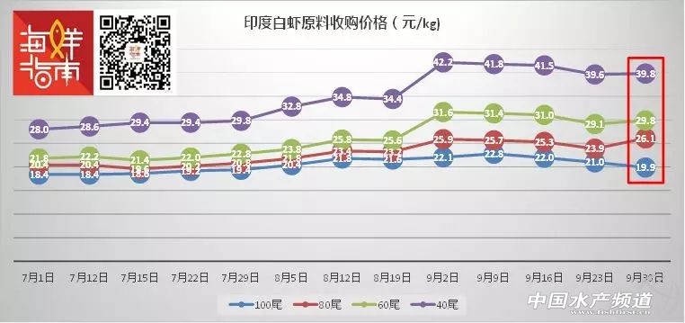 文/圖 海鮮指南(seafood-guide) 張麗麗、陳磊 海外白蝦原料收購價格 本期(2018年9月30日),環顧全球白蝦主產區原料價格, 越南、泰國、厄瓜多爾白蝦均出現下滑趨勢,印尼、印度白蝦逆勢上漲。具體如下: 注:以上產品為當地蝦類的塘頭收購價,匯率按當地貨幣實時兌換人民幣計算 越南蝦價下跌明顯。與9月23日相比,9月30日越南蝦價開始走低。100尾/公斤降幅為0.8元/公斤,80尾/公斤和60尾/公斤降幅為1元/公斤,40尾/公斤降幅高達為2.4元/公斤。 7月1日至9月30日越南白蝦原料收購價格走勢(來源:海鮮指南) 筆者分析,為避開國慶交通擁堵物流變緩,臨近國慶,國內進口商減少對東南亞產區對蝦的采購量,受供求關系影響,價格下滑。 厄瓜多爾白蝦中等規格價格下滑,大規格穩中上升。與9月23日相比,9月30日100尾/公斤降幅微小,為0.1元/公斤、80尾/公斤降幅為0.7元/公斤,、60尾/公斤降幅為1.4元/公斤,40尾/公斤不跌反升,漲幅為0.7元/公斤。 7月1日至9月30日厄瓜多爾白蝦原料收購價格走勢(來源:海鮮指南) 泰國小規格白蝦下跌明顯。與9月23日相比,9月30日泰國100尾/公斤規格降幅為1.4元/公斤、80尾/公斤降幅為1.8元/公斤,60尾/公斤的小幅下跌,降幅為0.4元/公斤,40尾/公斤價格堅挺,漲幅為0.5元/公斤。 9月2日至9月30日泰國白蝦原料收購價格走勢(來源:海鮮指南) 印度白蝦止跌反彈。與9月23日相比,9月30日印度小規格白蝦價格下滑明顯,100尾/公斤降幅為1.1元/公斤,但中等規格及大規格白蝦均有所上漲。80尾/公斤漲幅為2.2元/公斤,60尾/公斤漲幅為0.7元/公斤、40尾/公斤漲幅為0.2元/公斤。 7月1日至9月30日印度白蝦原料收購價格走勢(來源:海鮮指南) 馬來西亞蝦價企穩。與9月23日相比,9月30日馬來西亞各規格白蝦價格穩定,無明顯波動。 印尼蝦價大幅上漲。與9月23日相比,9月30日印尼100尾/公斤漲幅達2.2元/公斤、80尾/公斤漲幅達2.6元/公斤,60尾/公斤漲幅達2.2元/公斤、40尾/公斤的漲幅為2.6元/公斤。 海外草蝦收購價格行情 與9月23日相比,9月30日越南草蝦價格明顯下跌,各規格降幅在2.8-3元/公斤。 6月10日至9月30日越南草蝦收購價格走勢(來源:海鮮指南) 與9月23日相比,9月30日馬來西亞草蝦(虎蝦)價格穩定,未出現明顯波動。 6月10日至9月30日馬來西亞草蝦收購價格走勢(來源:海鮮指南) 溫馨提示: 以上價格行情由媒體“海鮮指南”“水產前沿”統計整理發布,僅供參考。市場有風險,交易需謹慎。 |