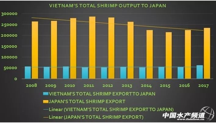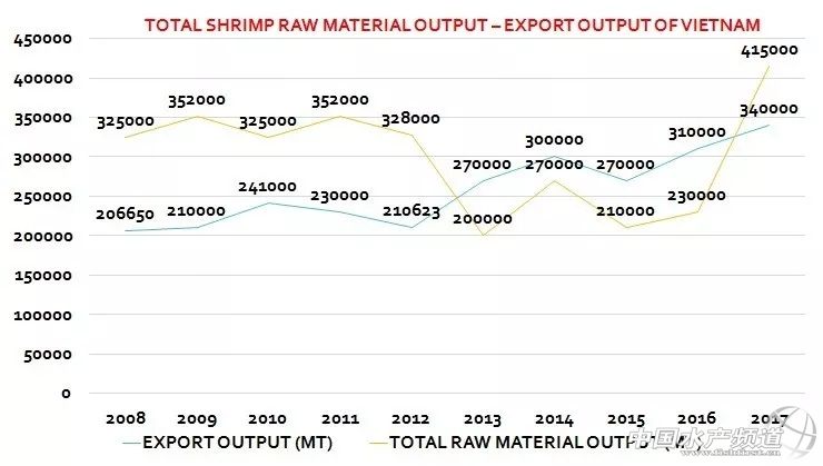 文/ 海鮮指南(seafood-guide) 陳磊 越南蝦養殖產業從1997年開始規;l展,主要養殖品種為南美白對蝦和黑虎蝦。近十年來,越南蝦的總養殖面積為60-70萬公頃左右,越南養殖加工出口的蝦產品和經過越南轉口貿易的蝦產品在世界蝦貿易量中占有舉足輕重的位置。 海鮮指南整理2018年越南VIETFISH會議上嘉賓發言的PPT,向讀者展示近年來越南蝦產業的發展狀況。 10年以來,越南的黑虎蝦養殖面積僅增加了2%,但是越南黑虎蝦的總貿易量卻增加了21%。這個數據在南美白對蝦中表現的更為明顯,從2007年-2017年,越南南美白對蝦的養殖面積僅僅增加了1.285%,但總的產出量卻增長了250%。產量的增長得益于對養殖技術和密度的不斷高要求。 從越南流入中國的邊貿蝦產品減少,越南蝦產量激增 越南蝦類養殖總產量(黃線)和出口總量(藍線)之間的變化圖 從2013年-2016年間,越南的蝦出口量遠遠大于越南本地原料蝦產品的總產量,說明有大量的蝦產品通過越南進行轉口貿易,并最后進入亞洲其他國家銷售。 同時,在2017年,越南本地的蝦產品產量實現快速增長,從2016年的23萬噸,增加至2017年的42.5萬噸。 越南進口蝦類數據 從2012年到2016年,越南進口蝦產品數據連年增長,到2017年,出現了小幅下降,但進口量也有27萬噸左右。而作為蝦產品主要生產國的越南進口的蝦也主要是經過“灰色貿易”渠道,轉口到其他國家銷售,中國就是最主要的終端消費市場。 2017年底到2018年初,海關加大了對邊貿走私水產品的查處力度,預計在2018年,通過越南中轉邊貿進入中國市場的蝦產品數量將進一步減少,市場正關化和規范化程度快速提升。 越南蝦產品在國際市場的表現: 2017年,全球前10大蝦產品出口國,排在第一的是印度,越南排在第3位,中國則是第7位。 印度蝦產品的主要出口國 美國市場蝦產品總需求量和越南對美國市場蝦產品出口量 美國市場對蝦產品的總需求量從2015年-2017年間處于平穩階段,每年需求穩定在60萬噸左右。越南對美國蝦產品的出口量在2017年出現減少,出口量僅有不到10萬噸。 美國目前也是越南蝦產品的第三大出口市場,年出口額超過6億美元,占越南蝦出口總值的17%。同時,今年9月份,美國對越南水產品進口的反傾銷稅稅率開始降低,向市場釋放積極信號,預計在2019年,越南對美國出口的蝦和巴沙魚產品數量將會增加。 日本市場蝦產品總需求量和越南對日本市場蝦產品出口量 2017年,日本進口蝦總額為25億美元,日本市場一直以來都是越南工廠十分重視的市場之一,無論是越南的蝦產品還是巴沙魚產品,越南工廠愿意投入十足的精力去開拓日本市場。但日本市場僅10年來的表現都很平穩,越南蝦產品對日本出口量都穩定的在5000噸/年左右,并沒有較大的波動。 展望未來:中國將成為全球蝦類消費第一大市場 預計到2020年,中國將會是全球蝦產品消費的第一大市場,年蝦產品消費總量在200萬噸左右,北美、日本和歐洲緊隨其后面。 未來中國市場對蝦產品的需求也會顯著增長,從而拉動全球蝦類產量的增加。 |