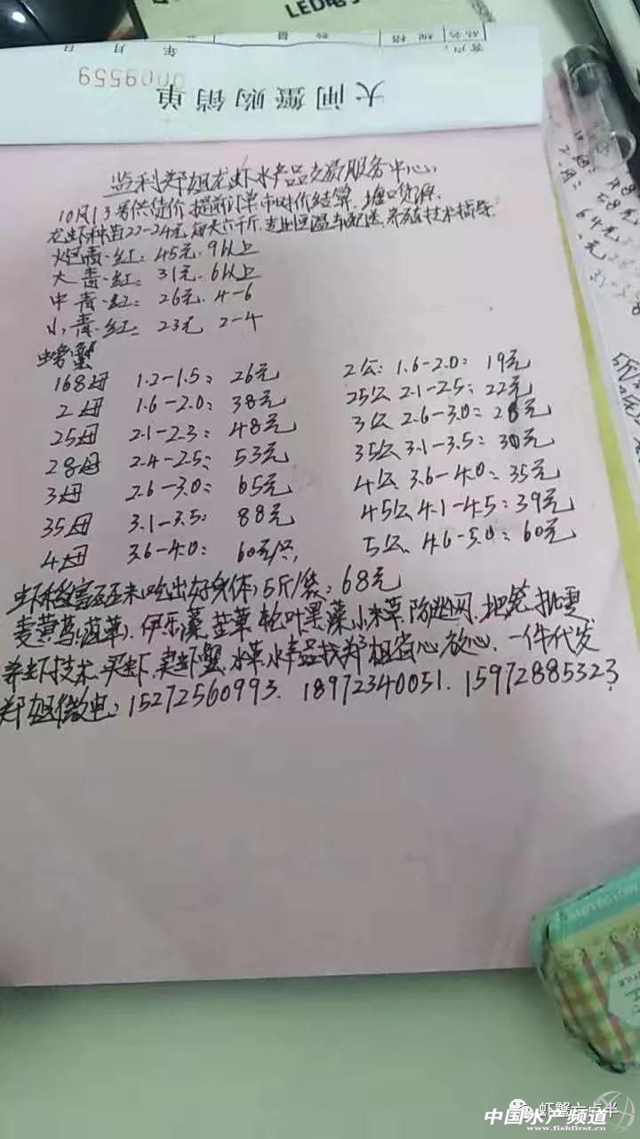 中國水產頻道報道, 報價是為了讓養殖戶能早點了解價格信息,根據行情盡量賣個好價錢。希望養殖戶朋友也能參與報價,提供價格信息,讓更多的人能更快更早的了解當天行情 2018.10.13 高淳 宜興 興化 泗洪 湖北 【關鍵字】:蝦蟹 價格 水產養殖 |