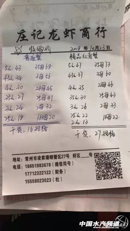 中國水產頻道報道,2018年10月23日河蟹價格如下: