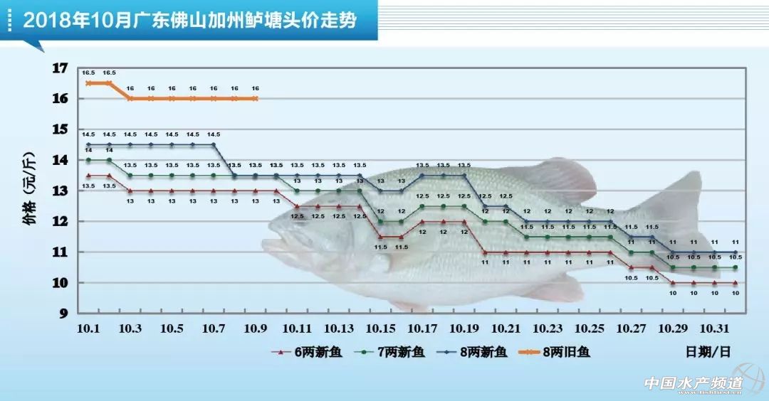 文/圖 水產(chǎn)前沿 李曉欣 10月,是大部分加州鱸產(chǎn)區(qū)舊魚和老魚交替的時(shí)段,多地舊魚已經(jīng)清空,新魚也接踵上市。隨著主產(chǎn)區(qū)新魚上市量的加大,全國魚價(jià)逐漸回落。 10月各產(chǎn)區(qū)行情簡析 廣東佛山:舊魚上旬清空,新魚大量上市沖擊魚價(jià) 10月,廣東佛山8兩上舊魚于上旬清空,魚價(jià)從月初的16.5元/斤跌至16元/斤,至此宣告著今年佛山8兩上老口鱸魚的最高價(jià)格為17.5元/斤,未能突破18元關(guān)口,比去年最高價(jià)格22元/斤低了4.5元/斤。 10月佛山新口鱸魚也陸續(xù)迎來上市高峰,受此影響,各規(guī)格新魚價(jià)格一路震蕩下跌。其中6兩上新魚從月初的13-13.5元/斤跌至今天的9.5-10元/斤;7兩上新魚從月初的13.5-14元/斤跌至今天的10-10.5元/斤;8兩上新魚從月初的14.5元/斤跌至今天的10.5-11元/斤;各規(guī)格跌了3-4元/斤不等。 從2017、2018年10月廣東佛山7兩上加州鱸新魚塘頭價(jià)對比走勢圖可知,去年10月中下旬開始魚價(jià)也是一路下滑,7兩上新魚從月初的13.5-14元/斤跌至月尾的10-10.5元/斤,跌幅達(dá)3.5元/斤,目前魚價(jià)與去年同期持平。 目前佛山地區(qū)大多養(yǎng)戶傾向出8兩上規(guī)格,以拉高賣價(jià)。部分養(yǎng)戶出了第一、第二網(wǎng)魚后現(xiàn)在選擇觀望,特別是部分已經(jīng)出了第二網(wǎng)魚的養(yǎng)殖戶,惜售心理明顯增強(qiáng)。預(yù)計(jì)接下來魚價(jià)持穩(wěn)或有小幅下滑,但降幅空間不大。 浙江湖州:新魚加大上市,魚價(jià)逐步下滑 10月以來浙江湖州當(dāng)?shù)乩峡邝|魚陸續(xù)清塘,目前已經(jīng)所剩不多,本地新魚陸續(xù)上市。隨著新魚上市增多,魚價(jià)逐步下滑,今天報(bào)價(jià)新口8兩上11.5/斤,相比10月初14-15元/斤跌了2.5-3.5元/斤;統(tǒng)貨報(bào)價(jià)10元/斤左右,比10月初13元/斤跌了3元/斤。目前湖州新魚上市量逐漸加大,預(yù)計(jì)后市魚價(jià)還將有所波動。 江蘇吳江:舊魚清空,新魚上市增多 10月中旬,吳江本地老口鱸魚已經(jīng)基本清空,8兩上舊魚價(jià)格從10月初的15元/斤跌至14元/斤,9兩上舊魚從10月初的16元/斤跌至15元/斤,跌幅均為1元/斤。吳江新魚也逐漸上市增多,主要以出8兩上為主,今天7兩上報(bào)價(jià)11元/斤,8兩上報(bào)價(jià)12元/斤,目前魚價(jià)基本上已經(jīng)達(dá)到臨界點(diǎn),部分養(yǎng)殖戶觀望心理增強(qiáng)。 四川成都:老口魚清空,養(yǎng)戶積極出新魚 10月上旬四川老口鱸魚已經(jīng)基本清完,新魚也緊接著陸續(xù)上市,魚價(jià)下跌幅度較大。近期,四川當(dāng)?shù)仞B(yǎng)殖戶有新魚達(dá)上市規(guī)格的都在積極出魚,今天9兩上報(bào)價(jià)13-13.5元/斤,相比10月初18-18.5元/斤下跌了5元/斤,預(yù)計(jì)后期價(jià)格還將小幅度波動。 湖北武漢:老魚基本清空,以出新魚為主 10月以來武漢當(dāng)?shù)仞B(yǎng)戶積極出魚清塘,到下旬老口鱸魚已經(jīng)基本清空,現(xiàn)在市場上以本地新魚和廣東新魚為主。受廣東魚影響,加上武漢本地新魚上市逐漸增多,武漢新口魚價(jià)從12元/斤左右跌至11元/斤,跌幅1元/斤,具體看魚頭大小和大魚比例而定。 湖南華容:少量老口存塘,市場走量減少 10月國慶期間華容當(dāng)?shù)仞B(yǎng)戶出魚積極,出魚量增加明顯。受廣東魚影響,華容魚價(jià)也逐步下降,今天報(bào)價(jià)11.5-12元/斤,相比10月初16元/斤下跌了4-4.5元/斤。當(dāng)前華容還有少量老口存塘,新魚也陸續(xù)上市,但近期市場銷量不大,整體出魚量有所減少。 安徽青陽:新魚未能上市,當(dāng)?shù)厍帱S不接 10月以來,青陽當(dāng)?shù)乩峡隰~達(dá)上市規(guī)格的都已陸續(xù)清塘,還有部分規(guī)格不夠的在并塘喂養(yǎng)。受吳江新魚上市增多影響,青陽魚價(jià)有所下跌,今天報(bào)價(jià)13元/斤,相比10月初16.5元/斤跌了3.5元/斤。青陽當(dāng)?shù)匦卖~距離上市還有1個(gè)月左右,現(xiàn)在整體處于青黃不接的狀態(tài)。 河南信陽:老口基本清完,新口少量上市 10月以來,受吳江魚影響,信陽魚價(jià)有所下滑,從10月初的16.5元/斤下跌至13.5元/斤,跌幅3元/斤。近期信陽出魚量很少,老口鱸魚已經(jīng)基本清完,大多新魚未達(dá)上市規(guī)格,有少量新口陸續(xù)上市,1斤上抓起12.5元/斤左右。 廣西南寧:受廣東魚影響,價(jià)跌3元/斤 受廣東新魚上市影響,流通商大多傾向到廣東拉魚,南寧本地魚價(jià)有所下跌。今天1斤上報(bào)價(jià)13-14元/斤,相比10月初16-17元/斤跌了3元/斤。目前廣西南寧本地老口鱸魚所剩不多,有少量新魚開始上市,但大部分還未達(dá)上市規(guī)格。 |