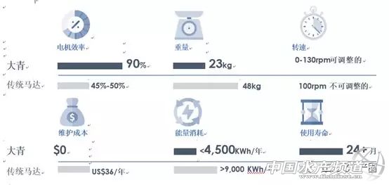 陳善南:市場各地區使用增氧機馬達,都只限于傳統AC電機+減速機所組成,傳統AC電機是定轉速而且缺點是耗電耗能,更無法物聯網或遙控控制。另外,目前電機制造與驅動器供應商是不同公司,電機和控制器分開設計制造不易達成優化效率控制。