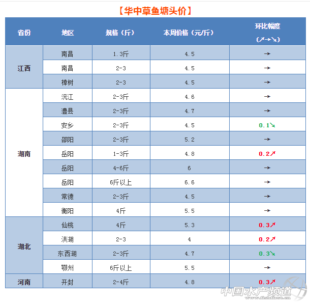中國水產頻道原創報道,利好利好!遼寧、湖南、湖北、河南、河北多地草魚漲價,養殖戶投苗積極,廣東草魚種頻頻上漲! 文/圖 水產前沿 鄭鵬飛 一周要聞 最近又有一股強冷空氣開始南下,自西向東影響我國北方大部分地區。今天,華北、黃淮以及東北等地區降溫明顯。預計明天以及12月2日將又有兩股冷空氣影響我國。隨著冷空氣的南下加速了魚的流通,最近多地草魚價格開始出現回暖,其中本周遼寧地區最大漲幅達到0.4元,華南草魚苗種也出現0.4元的上漲,湖北仙桃大規格草魚塘頭價也漲到5.3元/斤以上,湖南和江蘇部分地區價格也出現回暖趨勢。不過,近期山東,安徽、浙江和江蘇等地會有大霧天氣出現,提醒司機朋友注意行車安全。 今日行情 華南地區 隨著冷空氣南下,本周華南地區草魚流通量有所增加,草魚苗種行情出現好轉。不過,目前成魚行情仍然沒有明顯起色,價格上漲還有待氣溫的進一步降低。 中山:據養殖戶介紹,最近中山地區的成魚價格暫時沒有出現明顯上漲,不過最近拉魚的車多了很多。有流通商表示,最近大涌地區的草魚苗種流通加快,比之前好賣了很多,不過目前價格還是沒有出現明顯上漲。本周黃圃草魚苗種出現了一波明顯上漲,其中1-3兩最高上漲0.4元/斤,最新塘頭價5.2元/斤。 江門:從養殖戶了解到,目前江門地區統鯇和超市魚的行情依然比較低迷,超市鯇最新塘頭價保持在4.1-4.3元/斤。 肇慶:養殖戶表示,因為當地存塘草魚量比較到,在周邊行情出現回暖的情況下,目前肇慶地區的草魚價格還是沒有什么變化。 廣州:據流通商介紹,最近廣州地區草魚成魚的塘頭價基本還是維持在4.3元/斤左右。目前,小草魚行情已經開始回暖,不過草魚成魚還是沒有出現明顯好轉,市場上仍然不是很好賣。 廣西:本周廣西部分地區仍然在拆網箱,近期行情還是沒有出現好轉。從養殖戶了解到,來賓地區最新塘頭價5元/斤,貴港地區最新塘頭價5.2-5.3元/斤。防城港價格不變。桂林地區目前草魚價格也是維持在上周水平,最新報價5元/斤。 華中地區 本周華中部分地區草魚行情也是出現了好轉。有養殖戶表示,近期總算草魚行情總算有點起死回生的感覺了。其中,湖北仙桃,湖南常德部分市場草魚價格上漲比較明顯,江西地區草魚價格沒有出現明顯變化。 江西:有養殖戶表示,目前樟樹地區草魚價格還是老樣子,希望元旦能漲。最近變化不大,如果氣溫降大0℃左右,流通會明顯加快,到時候價格有望出現上漲。目前南昌地區2斤的草魚最新報價4.3元/斤,2.5斤左右的草魚賣4.4-4.5元/斤,基本還是維持在上周水平。九江地區最新塘頭價繼續維持在4.1-4.2元/斤,目前行情還是沒有好轉。 湖南:從養殖戶了解到,最近兩天湖南常德地區草魚價格也是開始上漲了,目前漲幅不大。有養殖戶表示,這兩天益陽地區草魚有點走不動,價格下滑了一點。邵陽地區目前價格繼續保持穩定,懷化地區9-10斤的草魚最新塘頭價10元/斤。 湖北:有養殖戶表示,最近仙桃地區的草魚行情有點氣死回升的感覺。目前小規格的塘頭價賣4.5元/斤,大規格最低也賣到5.3元/斤了,上漲0.2元左右。目前隨州地區變化不大。 華東地區 安徽:目前安徽淮南地區草魚價格仍然沒有出現明顯變化,預計冬至以后價格會有所好轉。池州地區5斤以上草魚最新塘頭價維持在5.6元/斤。 江蘇:養殖戶表示,最近淮安地區草魚行情略微出現好轉。隨著外圍行情的上漲,最近鹽城地區的草魚行情也是開始有起色了。不過最近駱馬湖正在清理網箱,草魚價格不是很好,塘頭價只賣到5-5.1元/斤左右。有養殖戶表示,感覺到周邊的草魚價格都漲了但是目前徐州地區的草魚價格還是沒有出現好轉,預計等冷空氣再次南下的時候價格能快速回升。據業內人士介紹,目前岡中草魚價格還是非常低迷,暫時沒有出現好轉。 福建:有養殖戶表示,目前福建地區草魚很少有人會賣,大家都在等價格。目前市場上魚很好賣,但是為何魚價還是沒有變化,閩湖地區最新塘頭報價依然維持在5.3元/斤。目前,南平地區草魚最新塘頭價5.1元/斤,三明地區最新塘頭價繼續維持在5.2元/斤。 浙江:從養殖戶了解到,目前浙江地區草魚最新塘頭價4.7元/斤,雖然最近流通量有所增加,但是價格還是很低迷。 其他地區 四川:本周四川地區草魚價格也傳來上漲的好消息,其中,綿陽地區報價最高為6.8元/斤,德陽地區草魚價格依然維持不變,最新塘頭價5元/斤;廣元地區較之前上漲了0.2元/斤。 遼寧:本周沈陽地區草魚價格開始有起色了,部分地區從之前的4.7元上漲到5.1元/斤,最大漲幅達到0.4元/斤。 山東:養殖戶表示,目前萊州地區的草魚價格還是沒有出現好轉,價格基本維持在上周水平。 河北:本周河北地區草魚價格整體變化不大。據養殖戶介紹,目前唐山地區3斤左右的草魚最新塘頭價4.8元/斤,流通比較慢。 云南:據流通商介紹,受非洲豬瘟影響,昆明地區的草魚價格也是出現了上漲,最大漲幅達到1.5元/公斤。上周二的草魚價格在12.5-13元/公斤,周三的晚上掉到11.5元/公斤,最近幾天價格再次回升。目前,當地的網箱草魚最新報價13元/公斤,而湖南草魚最新報價12.8元/斤。 甘肅:本周甘肅蘭州地區草魚最新報價5.5元/斤,價格變化不大。 |