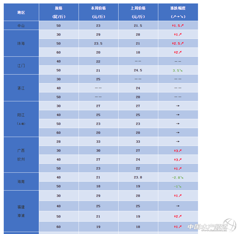 中國水產(chǎn)頻道原創(chuàng)報道,11月28日南美白對蝦各產(chǎn)區(qū)塘頭報價 本周行情 隨著天氣轉冷,北方很多地方活蝦供應減少,價格也有相應的上漲。目前市場上主要貨源為大棚和高位塘的蝦為主,優(yōu)質(zhì)貨源少。由于降溫明顯,近期養(yǎng)殖難度較大,產(chǎn)量不高,養(yǎng)殖戶需謹慎應對。今年價格走低,很多養(yǎng)殖戶投苗積極性不高,大多都是在觀望,是否搭建冬棚較猶豫。 分析與價格 華南地區(qū) 珠海:本周蝦價30頭29元/斤,50頭23.5元/斤,60頭20元/斤。本地大規(guī)格蝦已經(jīng)很少,交易減少。現(xiàn)在蓋棚完成率已達8成左右,但部分養(yǎng)殖戶比較猶豫。 陽江(土塘):本周蝦價30頭27元/斤,40頭25元/斤,50頭23元/斤,60頭20元/斤。陽江地區(qū)本周蝦價維穩(wěn),存塘量少是蝦價走高的主要原因。 海南:本周蝦價40頭蝦21元/斤,50頭18元/斤。 廣西:本周蝦價28頭33元/斤,30頭30元/斤,40頭27元/斤,44頭25元/斤,48頭23.8元/斤,70頭17元/斤。廣西大部分地區(qū)僅剩1成左右。受晚造養(yǎng)殖情況差,蝦長速慢、偷死等問題多的影響,冬棚蝦持觀望態(tài)度的人較多,大部分冬棚蝦已投苗,目前還有零星冬棚蝦投苗中。但養(yǎng)冬棚蝦的養(yǎng)殖戶有部分尚未蓋棚,待觀察氣候情況苗長勢如何再考慮是否搭棚。 福建:今日蝦價30頭29元/斤,40頭25元/斤,50頭21元/斤,60頭19元/斤,本周漳浦地區(qū)價格微跌,土塘出蝦已經(jīng)很少;東山地區(qū)蝦價(清塘蝦)20頭45元/斤,30頭30元/斤。東山市場基本結束。 華東地區(qū) 江蘇如東:今日蝦價25頭31元/斤,30頭29元/斤;40頭25-26元/斤,50頭23元/斤,60頭21元/斤。本周蝦價有小幅起伏,如東地區(qū)蝦存塘較多,價格預計短時間維穩(wěn)。 江蘇鹽城:今日蝦價30頭27元/斤,40頭26元/斤,50頭25元/斤。溫度逐漸降低,出蝦的棚進一步減少。預計后期隨著溫度的繼續(xù)走低,價格會平穩(wěn)上揚。 北方地區(qū) 山東:今日蝦價25頭30元/斤,30頭28元/斤,40頭24元/斤,50頭22元/斤。存量不多,價格對比上周有所下調(diào)。 養(yǎng)殖小貼士 高密度對蝦養(yǎng)殖模式中隨著放苗密度的增加,天然的餌料已經(jīng)不能滿足對蝦的生長需要,很多養(yǎng)殖戶仍然在對蝦長到3cm之前都在養(yǎng)水,造成對蝦營養(yǎng)缺乏,身體虛弱,抗病力弱,容易發(fā)病。 在對蝦養(yǎng)殖前期,根據(jù)對蝦放苗密度,及時觀察對蝦的攝食及胃腸食物情況,隨著生長慢慢增加前期對蝦所需的營養(yǎng)。 及時補鈣既可以改善對蝦的攝食,又能保證蝦苗的營養(yǎng)需要,提高對蝦活力,增強免疫力,減少發(fā)病的幾率,獲得良好的經(jīng)濟效益。 吃料慢的問題剖析及解決方案 1.腸胃病 腸炎、白便都屬于腸胃病,一般而言腸炎是細菌病,也可能是肝臟受損,水體環(huán)境和水體環(huán)境帶有細菌和霉菌都很容易引起對蝦得腸胃疾病。往往腸炎或白便的情況下,對肝臟的排毒也是巨大的。所以吃料慢也是必然的。建議:提前預防,定期投喂:乳酸菌、楊樹花等調(diào)理腸道。 2.寄生蟲病 蝦的寄生蟲主要有三種:纖毛蟲、孢子蟲、甲殼類原蟲。 纖毛蟲與甲殼類原蟲都是寄生在蝦的體表、附肢及鰓上。 孢子蟲主要是寄生在蝦的肌肉里,肉眼看,蝦的后半身肌肉一直都是發(fā)白的,這寄生蟲很少見,也很難根治,有的話,建議拌驅蟲的藥,六黃潑水也有效。 3.缺氧 缺氧一般在中后期較容易出現(xiàn),早期剛放苗時,養(yǎng)殖戶沒注意開增氧機也會出現(xiàn)缺氧浮頭的現(xiàn)象。一般缺氧后蝦軟殼,殼脫后硬不了。輕度缺氧是步足關節(jié)處及眼睛發(fā)紅。 4.物理因素突變 水變包括物理指標(溫度、光照),化學指標(pH、亞硝酸鹽、氨氮、藻毒素、溶解氧等),生物指標(浮游動物變化、浮游植物變化),這些因素的突然變化都會造成蝦應激從而影響蝦吃料,一般這因素很難診斷,所以排除可以其他的原因,再根據(jù)現(xiàn)場觀察、天氣變化等來診斷。環(huán)境變化前后可使用如多維與活性鈣等抗應激產(chǎn)品。 |