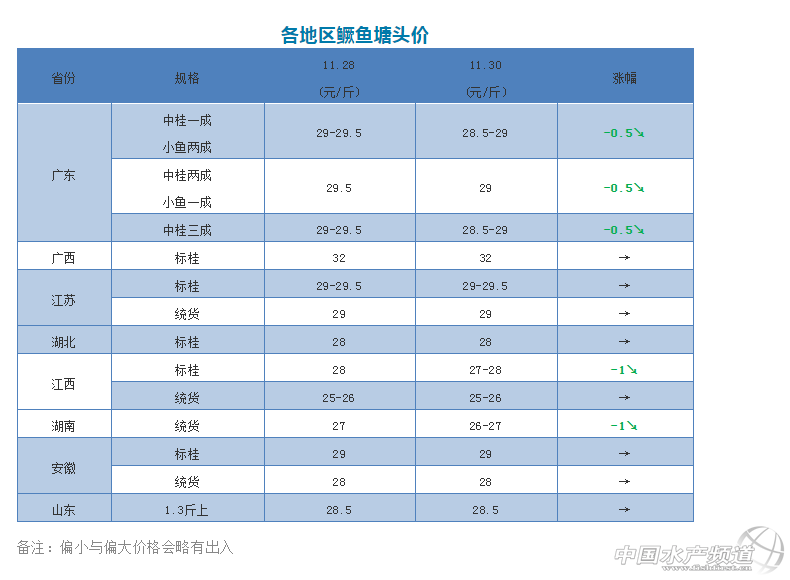 中國(guó)水產(chǎn)頻道原創(chuàng)報(bào)道, 眼下桂魚(yú)價(jià)格下跌,或是臭鱖魚(yú)加工廠(chǎng)采購(gòu)原料的最佳時(shí)機(jī)之一 文/圖 水產(chǎn)前沿 李靜 今天,廣東桂魚(yú)又跌了。 據(jù)流通商反映,今天廣東規(guī)格最好的桂魚(yú)統(tǒng)貨塘頭最高才訂29元/斤,主要以28.5元/斤的價(jià)格為主。主要是市場(chǎng)行情較差,走量非常少。現(xiàn)在收的魚(yú)多以打死包進(jìn)冷庫(kù)為主。眼下桂魚(yú)價(jià)格下跌,或是臭鱖魚(yú)加工廠(chǎng)采購(gòu)原料的最佳時(shí)機(jī)之一,預(yù)計(jì)元旦前后桂魚(yú)價(jià)格有可能回升。 除了廣東,今天江西標(biāo)桂和湖南統(tǒng)貨價(jià)格也跌了1元/斤左右,下跌趨勢(shì)明顯。其他省份桂魚(yú)價(jià)格暫時(shí)穩(wěn)定。 本周,除了桂魚(yú)成魚(yú)價(jià)格下跌,不少地區(qū)餌料魚(yú)價(jià)格也出現(xiàn)大幅回落,三水麥鯪跌了0.2元/斤,肇慶麥鯪跌了0.4元/斤,肇慶巴西雕跌了0.6元/斤,清遠(yuǎn)、花都、英德麥鯪分別下跌0.1-0.4元/斤不等。 今天是11月的最后一天,整體來(lái)說(shuō),11月全國(guó)各地鱖魚(yú)價(jià)格漲幅明顯。與上月同期相比,廣東鱖魚(yú)價(jià)格漲了2元/斤左右,廣西標(biāo)桂漲了2元/斤,江蘇標(biāo)桂漲了1.5元/斤,湖北標(biāo)桂漲了2元/斤,江蘇標(biāo)桂漲了1元/斤,湖南統(tǒng)貨漲了2元/斤,安徽標(biāo)桂漲了1.5元/斤,山東1.3斤以上規(guī)格漲了0.5元/斤。這樣的漲幅在歷年同期都實(shí)屬罕見(jiàn)。而今年鱖魚(yú)價(jià)格之所以一反常態(tài),不跌反漲,主要是因?yàn)榻衲牮D料魚(yú)價(jià)格持續(xù)飆升,養(yǎng)殖戶(hù)成本大幅增加,其實(shí)就算按照現(xiàn)在30元/斤的價(jià)格,廣東鱖魚(yú)養(yǎng)戶(hù)的利潤(rùn)空間也不如去年同期。但對(duì)外省來(lái)說(shuō),今年卻是一個(gè)很好的機(jī)會(huì),廣東作為鱖魚(yú)最大主產(chǎn)區(qū)拉高了全國(guó)鱖魚(yú)價(jià)格,而諸如江蘇等地,養(yǎng)殖成本增加不明顯,價(jià)格卻比往年同期高出2元/斤,利潤(rùn)甚至高達(dá)10元/斤,非常可觀(guān)。 11月氣溫下降,節(jié)日較少,市場(chǎng)行情一般,走量越來(lái)越少,鱖魚(yú)價(jià)格在月底出現(xiàn)了一波下跌,但考慮到養(yǎng)戶(hù)惜售心理較強(qiáng),預(yù)計(jì)跌幅不會(huì)太大。 |