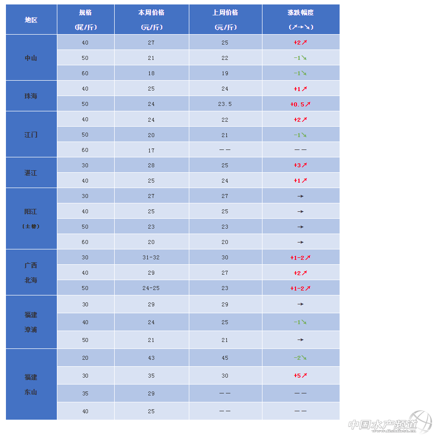 中國水產頻道原創報道,12月5日南美白對蝦各產區塘頭報價 文/水產前沿 植銀素 【本欄目由《水產前沿》、“西瑞動保”聯合制定,助各養殖朋友,養得好、賣得好!】 天氣預警 據中央氣象臺消息,強冷空氣繼續影響中東部地區,南方地區多雨雪天氣。受強冷空氣影響,預計5日夜間至8日,中東部大部地區先后有4~6級偏北風,氣溫先后下降6~8℃,其中,內蒙古中西部、華北北部、東北地區南部、黃淮東部、江淮、江南中東部、華南以及貴州中南部的部分地區氣溫下降8~10℃,局地降溫10℃以上。東部和南部海區先后有7~8級、陣風9~10級大風。8日早間最低氣溫0℃線將南壓至長江中下游沿江地區。中央氣象臺12月5日18時繼續發布寒潮藍色預警。降溫期間,養殖戶需注意蝦塘保溫工作,減少投喂,降低水體負擔。 分析與價格 華南地區 中山:40頭27元/斤,50頭21元/斤,60頭18元/斤。中山地區存塘較少,冬棚養殖進入正軌。 江門:本周蝦價40頭24元/斤,50頭20元/斤,60頭17元/斤。本地大規格蝦已經很少,交易減少。 陽江(土塘):本周蝦價30頭27元/斤,40頭25元/斤,50頭23元/斤,60頭20元/斤。陽江地區本周蝦價維穩,養殖戶陸續在賣蝦,近期蝦價上漲勢頭較好。 廣西:本周蝦價30頭31-32元/斤,40頭29元/斤,50頭24-25元/斤。廣西大部分地區僅剩1成左右,品質較高同規格蝦價也相對高出1元左右。冬棚蝦持觀望態度的人較多,大部分冬棚蝦已投苗,目前還有零星冬棚蝦投苗中。但養冬棚蝦的養殖戶有部分尚未蓋棚,待觀察氣候情況苗長勢如何再考慮是否搭棚。 福建:今日蝦價30頭29元/斤,40頭24元/斤,50頭21元/斤,60頭19元/斤,本周漳浦地區價格微跌,土塘出蝦已經很少,價格變動不大;東山地區蝦價(清塘蝦)20頭42元/斤,30頭35元/斤,35頭29元/斤,40頭25元/斤。本周價格小幅度漲跌,但由于蝦少,基本維持高價位。 華東地區 江蘇如東:今日蝦價15頭38元/斤,20頭36元/斤,25頭33元/斤,30頭32元/斤;40頭28-29元/斤,50頭27元/斤,60頭25元/斤。本周蝦價全線上漲,存塘量已不足2成。 北方地區 山東:今日蝦價25頭29元/斤,30頭27元/斤,40頭24元/斤。存量不多,價格對比上周有所下調。 養殖小貼士 高密度對蝦養殖模式中隨著放苗密度的增加,天然的餌料已經不能滿足對蝦的生長需要,很多養殖戶仍然在對蝦長到3cm之前都在養水,造成對蝦營養缺乏,身體虛弱,抗病力弱,容易發病。 在對蝦養殖前期,根據對蝦放苗密度,及時觀察對蝦的攝食及胃腸食物情況,隨著生長慢慢增加前期對蝦所需的營養。 及時補鈣既可以改善對蝦的攝食,又能保證蝦苗的營養需要,提高對蝦活力,增強免疫力,減少發病的幾率,獲得良好的經濟效益。 吃料慢的問題剖析及解決方案 1.腸胃病 腸炎、白便都屬于腸胃病,一般而言腸炎是細菌病,也可能是肝臟受損,水體環境和水體環境帶有細菌和霉菌都很容易引起對蝦得腸胃疾病。往往腸炎或白便的情況下,對肝臟的排毒也是巨大的。所以吃料慢也是必然的。建議:提前預防,定期投喂:乳酸菌、楊樹花等調理腸道。 2.寄生蟲病 蝦的寄生蟲主要有三種:纖毛蟲、孢子蟲、甲殼類原蟲。 纖毛蟲與甲殼類原蟲都是寄生在蝦的體表、附肢及鰓上。 孢子蟲主要是寄生在蝦的肌肉里,肉眼看,蝦的后半身肌肉一直都是發白的,這寄生蟲很少見,也很難根治,有的話,建議拌驅蟲的藥,六黃潑水也有效。 3.缺氧 缺氧一般在中后期較容易出現,早期剛放苗時,養殖戶沒注意開增氧機也會出現缺氧浮頭的現象。一般缺氧后蝦軟殼,殼脫后硬不了。輕度缺氧是步足關節處及眼睛發紅。 4.物理因素突變 水變包括物理指標(溫度、光照),化學指標(pH、亞硝酸鹽、氨氮、藻毒素、溶解氧等),生物指標(浮游動物變化、浮游植物變化),這些因素的突然變化都會造成蝦應激從而影響蝦吃料,一般這因素很難診斷,所以排除可以其他的原因,再根據現場觀察、天氣變化等來診斷。環境變化前后可使用如多維與活性鈣等抗應激產品。 |
