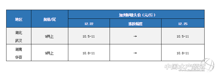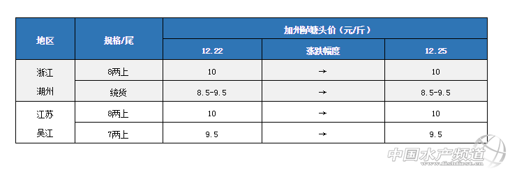 中國水產頻道原創報道, 12月25日各產區加州鱸行情與塘頭報價 文/圖 水產前沿 李曉欣 近幾天各地加州鱸塘頭價以企穩為主。今天佛山8兩上報價9.5-9.6元/斤,1斤上9.8元/斤,其中8兩上價格相比22日9.6元/斤微跌了0.1元/斤,現在佛山養戶以出大規格魚為主,實際成交價看魚頭大小及8兩上規格比例。 去年同期8兩上報價10.8-11元/斤,目前魚價同比去年低了1.2-1.4元/斤。和去年同期行情相比,今年魚價較為低迷。業內人士認為,今年各產區加州鱸養殖產量同比去年有所增加,存塘量能夠滿足市場需求,導致魚價上漲較為乏力。 臨近元旦,部分地區養戶開始惜售待價,期盼行情好轉。有觀點認為,節日消費將會帶動市場銷量上升,魚價有望回漲;也有觀點認為,如果惜售待價的養戶較多,到時出魚較為集中,若市場對鱸魚的需求增加不大,魚價或將上漲乏力。對此,你怎么看? 產區加州鱸塘頭價及行情簡析 華南地區 廣東佛山:現在佛山存塘魚以偏大規格為主,養戶多選擇出大規格魚來提高產量和效益。今天8兩上加州鱸報價9.5-9.6元/斤,1斤上9.8元/斤,具體成交價看魚頭大小和8兩上規格比例略有浮動,預計元旦銷量將走俏,魚價或將有所波動。 廣西南寧:受廣東魚沖擊,南寧魚價較為低迷,1斤上加州鱸報價11-12元/斤,目前南寧本地鱸魚大上市規格的較少,養戶惜售心理增強。 華東地區 浙江湖州:湖州8兩上加州鱸報價10元/斤左右,統貨報價8.5-9.5元/斤左右,具體看8兩上成次,現在湖州出魚以統貨為主,當地存魚量仍較大,魚價上漲較為乏力。 江蘇吳江:吳江加州鱸塘頭價企穩,7兩上報價9.5元/斤,8兩上10元/斤,當地養戶出魚積極性不高,流通商多到湖州地區收魚,預計魚價短期內波動不大,元旦銷量或會上升。 華中地區 湖北武漢:武漢9兩上魚價維持在10.5-11元/斤左右,武漢市場以廣東魚為主,受廣東魚沖擊市場影響,預計短期內魚價上漲機會不大。 湖南華容:華容9兩上加州鱸報價10.8-11元/斤左右,近期當地走量都不大,預計元旦銷量或將走俏。 西南地區 四川成都:成都9兩上加州鱸今天報價13元/斤,近期成都魚價有所回暖,但養戶出魚積極性仍不高,部分流通商選擇到廣東拉魚回本地市場。 |