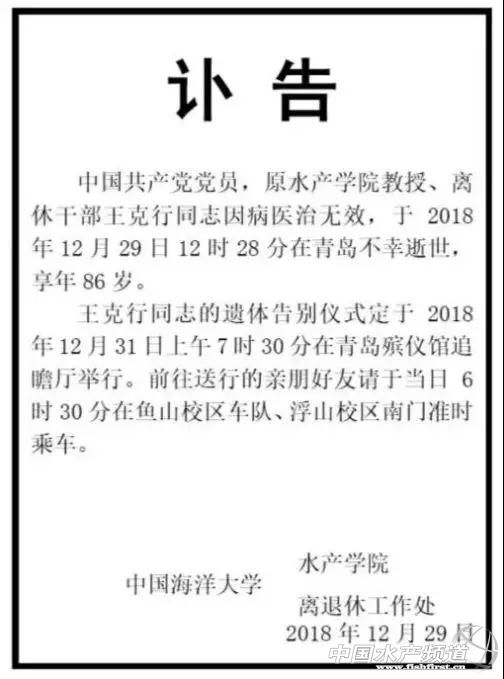 中國水產頻道原創報道, 驚悉,中國海洋大學水產學院教授、我國著名對蝦養殖專家王克行先生于2018年12月29日中午在青島逝世,享年86歲。 王克行先生于1957年考入山東大學水產系學習,1961年以優異的成績畢業,留校任教,擔任海洋無脊椎動物養殖教學工作,從此與對蝦結下不解之緣。王克行先生是中國的水產科學教育者、對蝦養殖專家,長期從事蝦類生物學與養殖技術的研究與教學工作,成功研究對蝦工廠化全人工育苗技術及大面積對蝦養殖技術,編著了《對蝦養殖》、《實用對蝦養殖技術》,專著《蝦類健康養殖原理與技術》,參編全國高校統編教材《蝦蟹類增養殖學》等,為我國水產事業的發展作出了突出貢獻,個人曾榮獲山東省勞動模范和山東省首屆專業技術拔尖人才的光榮稱號,并終生享受國家特殊津貼。 我們對王克行先生的逝世表示深切哀悼!并向先生的親人們致以最深切的問候! 水產前沿編輯部 2018年12月29日 【關鍵字】:王克行 中國海洋大學教授 水產養殖 |