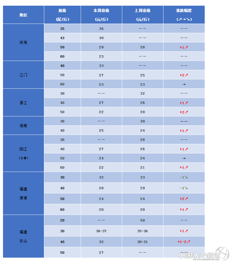 中國水產頻道原創報道,1月9日南美白對蝦各產區塘頭報價 文/水產前沿 植銀素 【本欄目由《水產前沿》、“西瑞動保”聯合制定,助各養殖朋友,養得好、賣得好!】 本周新聞 天氣方面,未來三天,西南、江南中西部、華南西部等地的部分地區將迎來一次強降水過程。特別是云南南部、廣西西部和北部、貴州南部等地的部分地區有暴雨,局地有大暴雨,云南南部還將伴有雷暴和短時強降水等強對流天氣。云南、貴州和廣西的主要降水時段為今明天,對于這一帶來說,這個時節出現這樣強的降雨并不多見,不排除局地會有極端降雨出現。 養殖方面,大棚冬造蝦養殖情況正常,但投苗規模同比去年縮小,還有環保等原因導致今年整體市場供應量減少,優質大蝦不足。春節越來越近,需求增長必定拉動蝦價上揚,多地養殖戶惜售,靜候高價。 凍品方面,今年春節前漲得最厲害的還是白蝦。據海鮮指南消息,全國各地凍品市場提貨調貨忙成一片,厄瓜多爾白蝦現貨價格不斷刷新,期貨價格屢創新高。40/50規格的厄瓜多爾白蝦價格達到800元/件,50/60規格的超過700元/件。 分析與價格 華南地區 珠海:本周蝦價35頭36元/斤,43頭30元/斤,50頭29元/斤,55頭24元/斤,60頭23元/斤。白水蝦已經出完,市場只有小部分冬棚蝦,大規格蝦價格較好。 江門:本周蝦價40頭33元/斤,50頭27元/斤,60頭23元/斤。近期江門蝦價行情較好,發病情況較多,養殖戶主要以調理為主,期待高價再出蝦。 陽江(土塘):本周蝦價40頭27元/斤,50頭24元/斤,60頭22元/斤。本周陽江地區價格均漲1元/斤,上市蝦較少,價格正常上漲,業內人士認為后續仍有上漲空間。 海南:本周蝦價40頭25元/斤。 福建:今日蝦價30頭32元/斤,40頭28元/斤,50頭24元/斤,60頭20元/斤。本周漳浦地區價格小幅度下跌,總體價格變動不大,降溫導致水質惡化,高位池多發腸炎、偷死情況;東山地區30頭36-37元/斤,40頭32元/斤,50頭27元/斤。 華東地區 江蘇如東:今日蝦價30頭42元/斤,40頭38元/斤。本周蝦價維持穩定。目前蝦存量已經很少,有蝦的養殖戶都在等蝦價破50大關,預計春節前交易會增多,當然蝦價也會維持在高位,養殖情況正常。 北方地區 山東日照:今日蝦價30頭42元/斤,50頭36元/斤,60頭32元/斤。本周山東地區持續上漲趨勢,預測后期還會保持。 海外白蝦原料收購價格 12月30日,泰國白蝦收購價格暴漲,馬來西亞繼續小幅上行,印度蝦價下滑。厄瓜多爾、越南等蝦價暫時平穩。(注:以上產品為當地蝦類的塘頭收購價,匯率按當地貨幣實時兌換人民幣計算) 泰國:100只/kg漲幅為1.5元/kg,80只/kg的漲幅高達為5.2元/kg、60只/kg漲幅為3.1元/公斤、40只/kg漲幅為2.1元/公斤。相較于上一周,泰國原料蝦價大幅上漲。 厄瓜多爾、越南:相較于上一周,厄瓜多爾和越南白蝦收購價格較為平穩,暫無波動。 印度:印度白蝦收購價格在23日小幅爬升之后又開始回落,100只/kg降幅為0.9元/kg,80只/kg的降幅為0.5元/kg、60只/kg降幅最大為1.9元/公斤、40只/kg降幅為1元/kg。 馬來西亞:100只/kg、80只/kg漲幅均在0.8元左右,60只/kg、40只/kg漲幅均在1.6元左右。(來源:海鮮指南) 養殖小貼士 高密度對蝦養殖模式中隨著放苗密度的增加,天然的餌料已經不能滿足對蝦的生長需要,很多養殖戶仍然在對蝦長到3cm之前都在養水,造成對蝦營養缺乏,身體虛弱,抗病力弱,容易發病。 在對蝦養殖前期,根據對蝦放苗密度,及時觀察對蝦的攝食及胃腸食物情況,隨著生長慢慢增加前期對蝦所需的營養。 及時補鈣既可以改善對蝦的攝食,又能保證蝦苗的營養需要,提高對蝦活力,增強免疫力,減少發病的幾率,獲得良好的經濟效益。 吃料慢的問題剖析及解決方案 1.腸胃病 腸炎、白便都屬于腸胃病,一般而言腸炎是細菌病,也可能是肝臟受損,水體環境和水體環境帶有細菌和霉菌都很容易引起對蝦得腸胃疾病。往往腸炎或白便的情況下,對肝臟的排毒也是巨大的。所以吃料慢也是必然的。建議:提前預防,定期投喂:乳酸菌、楊樹花等調理腸道。 2.寄生蟲病 蝦的寄生蟲主要有三種:纖毛蟲、孢子蟲、甲殼類原蟲。 纖毛蟲與甲殼類原蟲都是寄生在蝦的體表、附肢及鰓上。 孢子蟲主要是寄生在蝦的肌肉里,肉眼看,蝦的后半身肌肉一直都是發白的,這寄生蟲很少見,也很難根治,有的話,建議拌驅蟲的藥,六黃潑水也有效。 3.缺氧 缺氧一般在中后期較容易出現,早期剛放苗時,養殖戶沒注意開增氧機也會出現缺氧浮頭的現象。一般缺氧后蝦軟殼,殼脫后硬不了。輕度缺氧是步足關節處及眼睛發紅。 4.物理因素突變 水變包括物理指標(溫度、光照),化學指標(pH、亞硝酸鹽、氨氮、藻毒素、溶解氧等),生物指標(浮游動物變化、浮游植物變化),這些因素的突然變化都會造成蝦應激從而影響蝦吃料,一般這因素很難診斷,所以排除可以其他的原因,再根據現場觀察、天氣變化等來診斷。環境變化前后可使用如多維與活性鈣等抗應激產品。 【關鍵字】:南美白對蝦 塘頭報價 水產養殖 |
