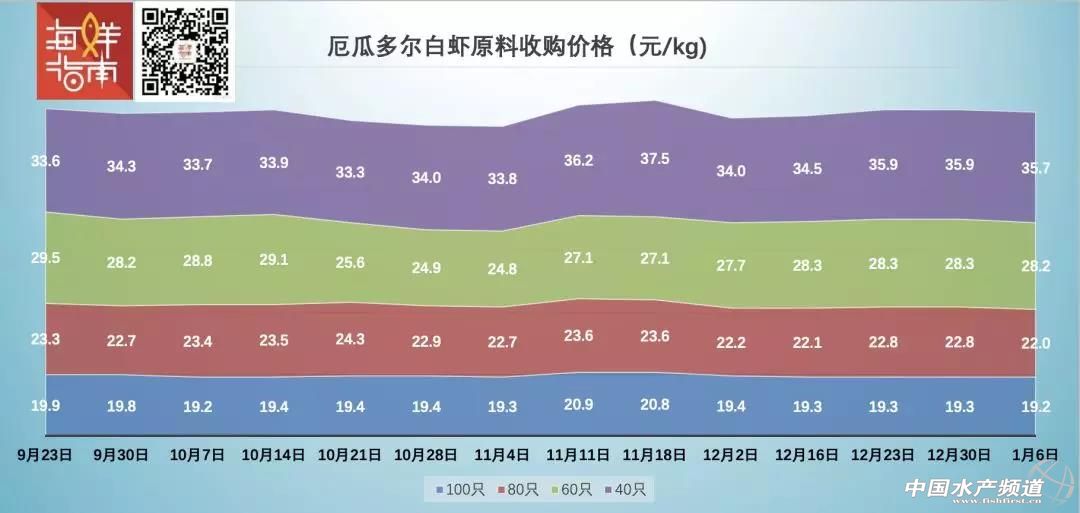 中國水產(chǎn)頻道原創(chuàng)報道, 文/圖 海鮮指南(seafood-guide) 張麗麗、陳磊 海外白蝦原料收購價格 本期(1月11日),厄瓜多爾、越南白蝦收購價格相對平穩(wěn),馬來西亞、印尼價格上漲明顯,泰國印度小幅上揚。 注:以上產(chǎn)品為當?shù)匚r類的塘頭收購價,匯率按當?shù)刎泿艑崟r兌換人民幣計算 各產(chǎn)區(qū)原料蝦具體漲跌情況如下: 厄瓜多爾白蝦原料價格穩(wěn)中略降 1月6日,相較于上一周,厄瓜多爾白蝦收購價格相對平穩(wěn),略有下滑,但幅度較小,各規(guī)格降幅在0.1-0.2元/kg左右,80只/kg的降幅為0.8元/kg。 9月23日至1月6日厄瓜多爾白蝦原料收購價格走勢(來源:海鮮指南) 中國市場白蝦現(xiàn)貨依然十分緊缺,據(jù)悉,目前尚有部分進口商的早前的訂單在陸續(xù)回貨。盡管進口商和經(jīng)銷商對厄瓜多爾白蝦望眼欲穿,但長達6-8周的船期的確讓業(yè)者望洋興嘆,面對市場上一蝦難求的情況,不得不轉(zhuǎn)為尋找其他產(chǎn)區(qū)的白蝦來替代。這可能也是近期馬來西亞、印尼、泰國、印度原料收購價格上揚的原因之一。 據(jù)海鮮指南了解,目前,秘魯正關白蝦、沙特正關白蝦都在陸續(xù)到港。 已經(jīng)到達國內(nèi)市場的沙特和秘魯正關白蝦 越南白蝦收購價格平穩(wěn) 1月6日,相較于上一周,越南白蝦收購價格也很平穩(wěn),暫無波動。 9月23日至1月6日越南白蝦原料收購價格走勢(來源:海鮮指南) 泰國白蝦收購價格小幅上行 從下圖可以看出,1月6日,相較于上一周,泰國原料蝦價升幅減緩,但仍在上行。 100只/kg漲幅為0.5元/kg,80只/kg的漲幅為0.7元/kg、60只/kg漲幅為0.8元/公斤、40只/kg漲幅為0.8元/公斤。 9月23日至1月6日泰國白蝦原料收購價格走勢(來源:海鮮指南) 印度白蝦收購價格回升 從下圖可以看出,1月6日,印度白蝦收購價格開始回升,100只/kg漲幅為0.6元/kg,80只/kg的漲幅為0.7元/kg、60只/kg漲幅為0.8元/公斤、40只/kg漲幅為1元/kg。 9月23日至1月6日印度白蝦原料收購價格走勢(來源:海鮮指南) 印尼白蝦收購價格上漲明顯 1月6日,印尼100只/kg白蝦收購價格漲幅為1.8元/kg、80只/kg漲幅為1.9元/kg、60只/kg漲幅為1.9元/kg、40只/kg降幅為1.3元/kg。 9月23日至1月6日印尼白蝦原料收購價格走勢(來源:海鮮指南) 馬來西亞白蝦收購價漲幅最大 1月6日,馬來西亞100只/kg和80只/kg原料蝦價格漲幅達到2元/kg、60只/kg漲幅達到2.1元/kg、40只/kg漲幅高達2.2元。目前蝦價為三個月以來最高價格。 9月23日至1月6日馬來西亞白蝦原料收購價格走勢(來源:海鮮指南) 【關鍵字】:厄瓜多爾 蝦價 印度 收購價格 水產(chǎn)養(yǎng)殖 |