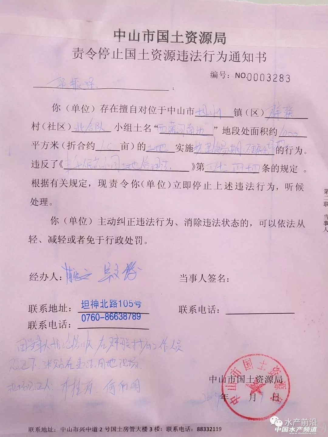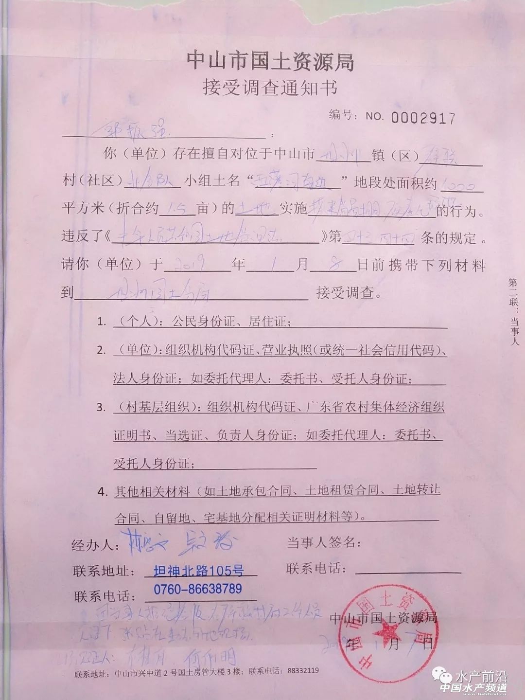 中國水產(chǎn)頻道獨(dú)家報(bào)道,本想安心投資水產(chǎn)養(yǎng)殖,不料卻遭遇鬧心的事情 文/圖 水產(chǎn)前沿 唐東東 郭振強(qiáng)在中山的養(yǎng)殖場及簡易板房 魚塘邊搭建的簡易板房屬違建?5天后將被強(qiáng)拆!——1月15日,在中山市坦洲鎮(zhèn)群聯(lián)村北合隊(duì)承包260畝魚塘的郭振強(qiáng),再次收到中山市國土資源局通過發(fā)包方群聯(lián)村委傳達(dá)的通知。在上周一(1月7日),郭振強(qiáng)已經(jīng)收到中山市國土資源局開出的《責(zé)令停止國土資源違法行為通知書》、《接受調(diào)查通知書》,稱其存在擅自對(duì)位于中山市坦洲鎮(zhèn)群聯(lián)村北合隊(duì)小組土名“西灌河南邊”地段處面積約1000平方米(折合約1.5畝)的土地實(shí)施“搭建簡易棚、硬底化場地”的行為,違反了《中華人民共和國土地管理法》第四十二、四十三和四十四條的規(guī)定。責(zé)令其于1月8日前往坦洲國土分局接受調(diào)查。 郭振強(qiáng)如期前往分局,但拒不承認(rèn)自己的行為違法。“從來沒有遇到過這種事情,我那么大的養(yǎng)殖面積,要人管理也要堆放農(nóng)資用品,沒有房子怎么搞?太氣人了!”郭振強(qiáng)是珠海斗門白蕉人,2017年12月15日與發(fā)包方中山市坦洲鎮(zhèn)群聯(lián)村北合隊(duì)村民小組簽訂土地租賃合同,對(duì)方將當(dāng)?shù)?61畝農(nóng)用土地出租給郭振強(qiáng)作為種、養(yǎng)殖之用,承包期為10年。據(jù)郭振強(qiáng)反饋,該處土地原為磚廠,已閑置八九年時(shí)間。除該養(yǎng)殖場外,郭振強(qiáng)還在坦洲另有3處養(yǎng)殖場,分別為107畝、90畝、120多畝,總計(jì)接近600畝,其中涉事養(yǎng)殖場為總場。 《責(zé)令停止國土資源違法行為通知書》、《接受調(diào)查通知書》 《水域?yàn)┩筐B(yǎng)殖證》 本想安心投資水產(chǎn)養(yǎng)殖,不料卻遭遇這種鬧心的事情。對(duì)于中山市國土資源局所言的三處違規(guī),郭振強(qiáng)做了解釋:其一,自己已經(jīng)在2018年4月27日取得了由中山市政府頒發(fā)、可用于該地段養(yǎng)殖的《水域?yàn)┩筐B(yǎng)殖證》,屬于合規(guī)養(yǎng)殖。按慣有的邏輯,管理260畝魚塘需要有配套的農(nóng)資用品存放區(qū)、管理人員生活區(qū)、實(shí)驗(yàn)室以及培訓(xùn)、辦公區(qū)。2018年7月份左右,郭振強(qiáng)分別向當(dāng)?shù)剞r(nóng)(漁)業(yè)主管部門和國土資源局遞交了申請(qǐng)施工的設(shè)計(jì)圖紙,但沒有得到明確答復(fù)。由于此時(shí)養(yǎng)殖場塘口基建快接近尾聲,為減少投資損失,讓養(yǎng)殖盡快走入正軌,2018年8月份郭振強(qiáng)按原規(guī)劃搭建了上述養(yǎng)殖配套基建,但建設(shè)途中一直沒有相關(guān)部門人員前來阻止。直到2019年1月7日,才被認(rèn)定為違建。 其二,實(shí)際養(yǎng)殖配套基建只有400平米左右,其中管理人員生活區(qū)、實(shí)驗(yàn)室以及培訓(xùn)、辦公區(qū)共計(jì)300平米,農(nóng)資用品堆放區(qū)100平米。(筆者致電國家農(nóng)業(yè)農(nóng)村部漁業(yè)漁政管理局副局長李書民時(shí),告知養(yǎng)殖配套基建一般不超過2%即可。按260畝塘口面積算,配套基建不超過3400平米是可行的) 其三,中山市國土資源局所言“違建”部分,原先為洼地,因此郭振強(qiáng)做了回填處理。這點(diǎn)或許被認(rèn)定為違反“第四十二條”。 郭振強(qiáng)稱,原本自己非常配合中山市國土資源局的執(zhí)法工作,前期說硬化區(qū)域太多時(shí),自己也立即將部分水泥路挖掉,重新恢復(fù)泥路。“后來又說搭建的棚面積太大,要拆掉,我就一下子來氣了。”郭振強(qiáng)表示非常不理解,盡管自己確實(shí)是在未經(jīng)批準(zhǔn)的情況下先建了,但也是事出有因,接受不了這種強(qiáng)硬的執(zhí)法。國家農(nóng)業(yè)農(nóng)村部漁業(yè)漁政管理局副局長李書民在電話中也表示,雖然走的程序上有瑕疵,但養(yǎng)殖配套基建還是需要有,如果拆了又要重新批、重新建,也是件耗費(fèi)人力、財(cái)力、物力的事情。因此,李書民建議是否可以補(bǔ)走程序或以罰款的方式來處理,而非清拆。 拆掉過多的水泥路 不過,筆者也通過當(dāng)?shù)厍懒私獾剑壳爸猩绞腥φD非法占用耕地的現(xiàn)象,每個(gè)季度都會(huì)通過衛(wèi)星定位拍照。據(jù)該渠道反饋,郭振強(qiáng)位于群聯(lián)村的養(yǎng)殖場屬于農(nóng)業(yè)用地,硬底化屬于農(nóng)業(yè)用地的雷區(qū);而且,按當(dāng)?shù)氐囊?guī)定,1000畝地只能報(bào)建幾十平方,且只能做農(nóng)具房,還需要通過國土、建設(shè)、農(nóng)業(yè)等部門以及當(dāng)?shù)卮逦鷾?zhǔn)后才能建。“現(xiàn)在國家保護(hù)耕地,大家重視起來了,以前是可以鉆空子,但現(xiàn)在沒人敢隨便批準(zhǔn)建。所以既沒有走程序,還建這么大,又硬底化,算是撞在槍口了,沒辦法。” 與發(fā)包方中山市坦洲鎮(zhèn)群聯(lián)村北合隊(duì)村民小組簽訂土地租賃合同 養(yǎng)殖場板房設(shè)計(jì)圖 《中華人民共和國土地管理法》顯示:第四十二條,因挖損、塌陷、壓占等造成土地破壞,用地單位和個(gè)人應(yīng)當(dāng)按照國家有關(guān)規(guī)定負(fù)責(zé)復(fù)墾;沒有條件復(fù)墾或者復(fù)墾不符合要求的,應(yīng)當(dāng)繳納土地復(fù)墾費(fèi),專項(xiàng)用于土地復(fù)墾。復(fù)墾
