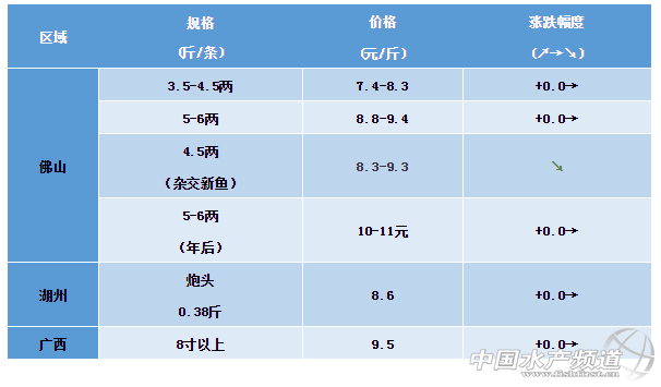 中國水產頻道原創報道, 文/ 水產前沿 植銀素 黃顙魚 佛山區域:黃顙魚舊魚存塘量大,舊魚近期價格相對平穩,舊魚魚頭5-6兩左右,訂過年后大魚5-6兩10-11元;部分新魚開始出魚,雜交價格近期持平,新魚魚頭3.5-4兩;近期溫度下降,吃料減少;病害主要有腸炎,出血,水霉等。 浙江湖州:黃顙魚在8.5-9元/斤左右徘徊,市場行情一般,養殖戶利潤較低,預期后期價格依然維穩。 廣西區域:受近期網箱拆除,強冷空氣影響,魚集中出售沖擊影響,近期魚價較低迷,本周黃顙魚與上周基本持平。 【關鍵字】:黃顙魚 價格行情 水產養殖 |