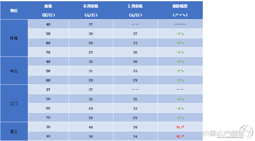 本周新聞 中國(guó)水產(chǎn)頻道原創(chuàng)報(bào)道,國(guó)際方面,泰國(guó)、馬來(lái)西亞白蝦收購(gòu)價(jià)格繼續(xù)上漲,已連續(xù)升價(jià)一個(gè)月;印度、越南價(jià)格下跌明顯;厄瓜多爾、印尼漲跌幅度相對(duì)較小。東南亞產(chǎn)區(qū)如泰國(guó)、馬來(lái)西亞等地白蝦收購(gòu)價(jià)格大漲,主要是因?yàn)橹袊?guó)市場(chǎng)目前的厄瓜多爾白蝦現(xiàn)貨庫(kù)存已經(jīng)無(wú)法滿(mǎn)足市場(chǎng)需求,但期貨又來(lái)不及趕在節(jié)前到港。因此,國(guó)內(nèi)進(jìn)口商轉(zhuǎn)為就近采購(gòu),從泰國(guó)馬來(lái)西亞等產(chǎn)地加緊補(bǔ)貨。相對(duì)集中的訂單推高了泰國(guó)、馬來(lái)西亞等地的原料蝦價(jià)。 養(yǎng)殖方面,近期由于珠三角地區(qū)天氣回暖加上春節(jié)拉動(dòng)需求增長(zhǎng),養(yǎng)殖戶(hù)出蝦增多。但是珠海地區(qū)較多病蝦上市,加上集中出蝦,中山、珠海、江門(mén)多地蝦價(jià)出現(xiàn)下跌。湛江地區(qū)也存在集中出蝦,有養(yǎng)殖戶(hù)表示這兩天抓蝦的網(wǎng)從1500元變成5000元,但仍擋不住養(yǎng)戶(hù)賣(mài)蝦熱情,40-50頭規(guī)格較為吃香,價(jià)格較上周呈上漲趨勢(shì)。 海外白蝦原料收購(gòu)價(jià)格 厄瓜多爾:1月20日,相較于上一周,厄瓜多爾白蝦小規(guī)格下跌、大規(guī)格上漲。100只/kg原料蝦降幅為0.2元/kg,80只/kg降幅為0.3元/kg、60只/kg漲幅為0.4元/kg、40只/kg漲幅最大為1.6元/kg。 越南:1月20日,相較于上一周,越南原料蝦價(jià)明顯下跌。100只/kg原料蝦降幅為0.8元/kg,80只/kg降幅為1元/kg、60只/kg降幅為1元/kg、40只/kg降幅較小為0.4元/kg。 泰國(guó):1月20日,相較于上一周,泰國(guó)原料蝦價(jià)格繼續(xù)大幅上揚(yáng),從下圖可以看出蝦價(jià)已經(jīng)連續(xù)上漲一個(gè)月。100只/kg原料蝦漲幅為0.7元/kg,80只/kg漲幅為1元/kg、60只/kg漲幅為2元/kg、40只/kg漲幅高達(dá)4.1元/kg,突破40元大關(guān)漲至全年最高價(jià)。 印度:1月20日,相較于上一周,印度原料蝦明顯下跌,100只/kg降幅為1.7元/kg,80只/kg的價(jià)格下滑降幅為1.3元/kg、60只/kg降幅為1.9元/公斤、40只/kg降幅高達(dá)3.3元/kg。 印尼:1月20日,印尼白蝦收購(gòu)價(jià)格相對(duì)平穩(wěn),各規(guī)格回落幅度不超過(guò)0.2元/kg。 馬來(lái)西亞:1月20日,馬來(lái)西亞各規(guī)格原料蝦價(jià)格大漲。100只/kg原料蝦漲幅為3.8元/kg;80只/kg漲幅為3.8元/kg;60只/kg漲幅為3.7元/kg;40只/kg漲幅為3.6元/kg,突破50元/kg大關(guān),漲至全年最高價(jià)。 注:以上產(chǎn)品為當(dāng)?shù)匚r類(lèi)的塘頭收購(gòu)價(jià),匯率按當(dāng)?shù)刎泿艑?shí)時(shí)兌換人民幣計(jì)算 國(guó)內(nèi)部分產(chǎn)區(qū)蝦價(jià)分析 華南地區(qū) 珠海:今日蝦價(jià)40頭37元/斤,50頭30元/斤,60頭28元/斤,70頭25元/斤。蝦中表示近期珠三角行情遇冷,盡管價(jià)格下跌,但養(yǎng)殖戶(hù)仍集中出蝦,而且溫棚病蝦上市較多,價(jià)格也受到一定影響;今天下訂“過(guò)年蝦”價(jià)格比昨天上漲2元左右。 中山:今日蝦價(jià)40頭35元/斤,50頭31-32元/斤,60頭28元/斤。本周中山蝦價(jià)下滑1-3元,天氣轉(zhuǎn)暖,養(yǎng)殖戶(hù)出蝦較多,但是近幾日行情都不如意,價(jià)格持續(xù)下跌。 江門(mén):今日蝦價(jià)37頭37元/斤,50頭35元/斤,60頭29元/斤,70頭23.5元/斤。養(yǎng)殖戶(hù)反應(yīng)最近天氣變化導(dǎo)致中小蝦發(fā)病增加。 海南:今日蝦價(jià)40頭28元/斤,45頭26元/斤,50頭23元/斤,60頭19元/斤。 福建:漳浦地區(qū):今日蝦價(jià)30頭42元/斤,40頭36元/斤,50頭30元/斤。本周漳浦地區(qū)價(jià)格維持穩(wěn)定。東山地區(qū):20頭52元/斤,26頭46元/斤,30頭42元/斤,40頭37-38元/斤,50頭的32元/斤。近期福建價(jià)格未受影響,仍然保持上漲趨勢(shì),養(yǎng)戶(hù)出蝦不多。 華東地區(qū) 江蘇如東:今日蝦價(jià)20頭內(nèi)50-52元/斤,25頭49元/斤,30頭48元/斤。本周蝦價(jià)穩(wěn)中有漲。目前蝦存量已經(jīng)很少,交易量也極少,有蝦的養(yǎng)殖戶(hù)等待年后價(jià)格更高再出蝦。 北方地區(qū) 山東日照:今日蝦價(jià)30頭43元/斤,35頭39元/斤,40頭38元/斤。本周山東地區(qū)持續(xù)上漲趨勢(shì),存塘較少,預(yù)測(cè)后期還會(huì)保持。 河北:今日蝦價(jià)20頭40元/斤,30頭36元/斤。對(duì)比上周,河北蝦價(jià)亦小幅下滑, 30頭規(guī)格較多,40頭的蝦并不吃香,由于春節(jié)臨近,大部分養(yǎng)殖戶(hù)集中出蝦,出現(xiàn)壓價(jià)的情況較多。 養(yǎng)殖小貼士 高密度對(duì)蝦養(yǎng)殖模式中隨著放苗密度的增加,天然的餌料已經(jīng)不能滿(mǎn)足對(duì)蝦的生長(zhǎng)需要,很多養(yǎng)殖戶(hù)仍然在對(duì)蝦長(zhǎng)到3cm之前都在養(yǎng)水,造成對(duì)蝦營(yíng)養(yǎng)缺乏,身體虛弱,抗病力弱,容易發(fā)病。 在對(duì)蝦養(yǎng)殖前期,根據(jù)對(duì)蝦放苗密度,及時(shí)觀察對(duì)蝦的攝食及胃腸食物情況,隨著生長(zhǎng)慢慢增加前期對(duì)蝦所需的營(yíng)養(yǎng)。 及時(shí)補(bǔ)鈣既可以改善對(duì)蝦的攝食,又能保證蝦苗的營(yíng)養(yǎng)需要,提高對(duì)蝦活力,增強(qiáng)免疫力,減少發(fā)病的幾率,獲得良好的經(jīng)濟(jì)效益。 吃料慢的問(wèn)題剖析及解決方案 1.腸胃病 腸炎、白便都屬于腸胃病,一般而言腸炎是細(xì)菌病,也可能是肝臟受損,