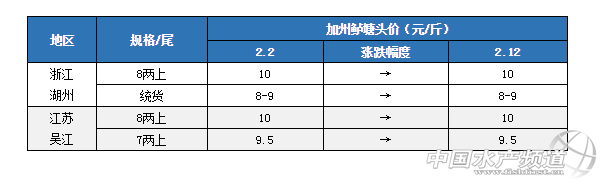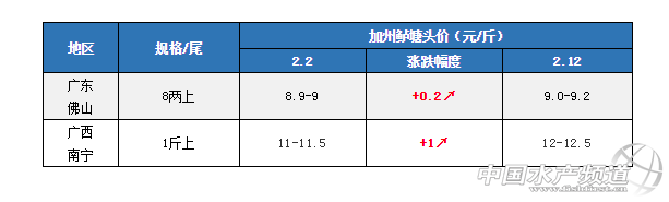 中國水產頻道原創報道, 文/圖 水產前沿 李曉欣 春節期間,各大批發市場和終端的加州鱸銷量翻倍增加,加上拉網人工費用上漲,部分產區加州鱸塘頭價有所上調。其中,廣東佛山加州鱸塘頭價相比年前上漲了0.2元/斤,廣西南寧上漲了1元/斤,湖北武漢上漲了11.5-12元/斤,其他產區價格保持平穩。這兩天隨著春節假期結束,各地陸續開工,預計接下來市場銷量將慢慢恢復正常。 產區加州鱸塘頭價及行情簡析 華南地區 廣東佛山:佛山8兩上加州鱸塘頭報價9-9.2元/斤左右,1斤上捉9.2元/斤,實際成交價看魚頭大小及規格比例略有浮動。春節期間加州鱸市場需求量大,加上節假日期間拉網費用增加,塘頭價有所上漲。目前順德區域養戶出魚積極性高,南海沙頭區域存塘較多,養戶出魚積極性一般。 廣西南寧:今天南寧1斤上塘頭報價在12-12.5元/斤左右,相比2日報價上漲了1元/斤,主要是受春節消費和拉網費用增加影響,目前南寧本地鱸魚存塘不多。 華南地區 浙江湖州:湖州8兩上加州鱸報價10元/斤,統貨8-9元/斤,實際成交價看炮頭大小及整塘魚成數。年初二到年初七期間當地鱸魚走量增多,接下來量將會慢慢恢復正常,這兩天行情稍微有所松動,目前統貨7成以上的魚市場銷量較好,成交價相比打樣價格上浮0.1-0.3元/斤。 江蘇吳江:吳江鱸魚價格企穩,7兩上報價9.5元/斤,8兩上10元/斤。春節期間吳江鱸魚走量有所增加,這兩天走量有所回落,養戶出魚積極性一般,魚價比較平穩。 華中地區 湖北武漢:武漢9兩上鱸魚今天報價11.5-12元/斤左右,實際成交大多在11.5-11.8元/斤之間,外圍的個別魚塘收12元/斤。節日期間武漢鱸魚銷量增加,市場批發價在13-13.5元/斤,塘頭價也有所上漲。 湖南華容:華容9兩上加州鱸塘頭報價11-11.5元/斤,當地很多養戶出魚意愿一般。 西南地區 四川成都:成都9兩上加州鱸今天報價12元/斤,主要是受廣東魚沖擊市場影響,由于成都和廣東鱸魚存在較大價差,當地流通商到廣東拉魚增多,魚價有所下滑。 注:上述價格及行情分析僅供參考,市場有風險,入市需謹慎。 |