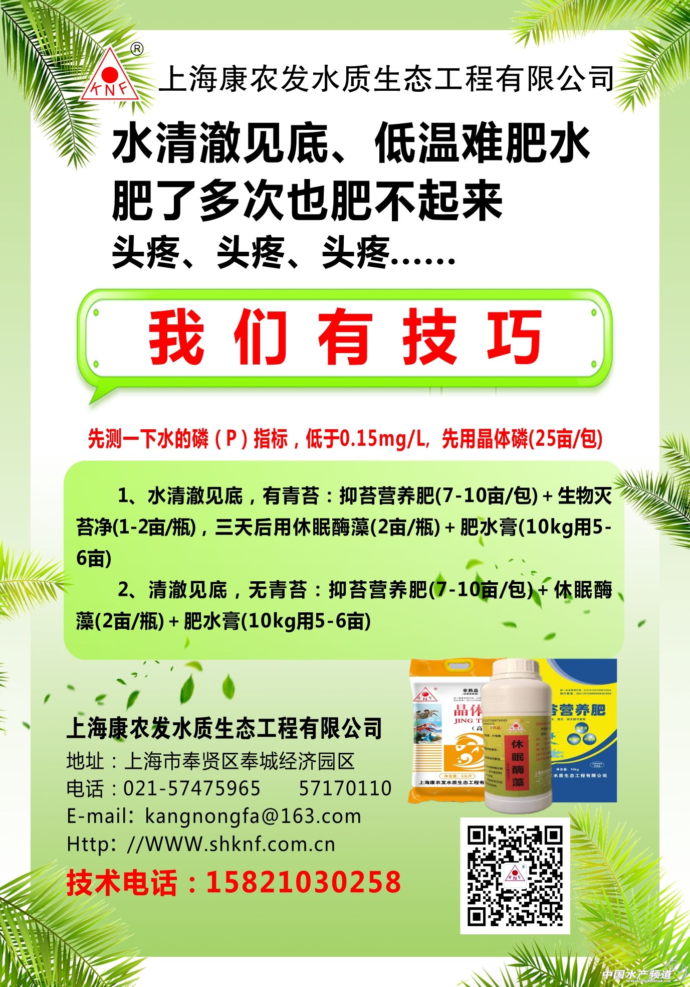 上海康農(nóng)發(fā)水質生態(tài)工程有限公司座落于國際繁華大都市和多元化文化氣息的杭州灣畔。上海,秉著得天獨厚的文化、掌握著國際最新信息資源,在積極創(chuàng)新不斷努力提高產(chǎn)品品質的;同時,也著手于開發(fā)新一代的生物活水、調水、改水和微生態(tài)動保產(chǎn)品,公司自 2004 年成立以來,經(jīng)歷過風風雨雨后,厚積薄發(fā),在江浙滬地區(qū)頗有名氣,創(chuàng)造了多個百萬級的客戶,公司一直引導在水產(chǎn)養(yǎng)殖行業(yè)以綠色生態(tài)養(yǎng)殖、無殘留、無公害的生態(tài)養(yǎng)殖為新概念,并同時配套了擁有綠色生態(tài)、健康養(yǎng)殖水環(huán)境的技術服務。康農(nóng)發(fā)水質生態(tài),永無止境的追求是我們的口號,也是我們孜孜不倦的追求目標。對于目前水產(chǎn)養(yǎng)殖雜亂無序的養(yǎng)殖技術要點,我公司針對自己產(chǎn)品的特性,為了讓養(yǎng)殖客戶使用產(chǎn)品簡易化,公司相應提供了一些簡便且高效的使用小技巧,并且制作出了通俗易懂一目了然的海報,大大的解決了養(yǎng)殖戶們的產(chǎn)品使用迷茫及困惑。同時,公司在滿足水產(chǎn)行業(yè)以綠色生態(tài)養(yǎng)殖的前提下,在湖北投資籌建新的生產(chǎn)基地,并正積極的投入到畜禽生態(tài)養(yǎng)殖和觀賞水池的水環(huán)境改良工程。