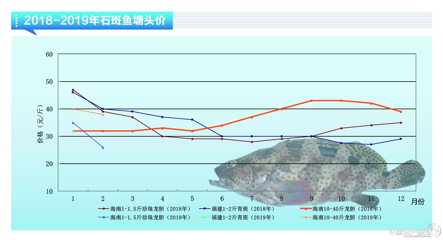 中國水產(chǎn)頻道獨(dú)家報(bào)道, 成魚市場:1月份石斑魚市場價(jià)格保持平穩(wěn)。海南塘頭珍珠龍膽1-1.6斤標(biāo)魚報(bào)價(jià)35元/斤,與上月價(jià)格持平,較2018年同期價(jià)格低10元/斤,較2017年同期價(jià)格高10%,與2016年同期價(jià)格相近;1.6-2斤規(guī)格魚報(bào)價(jià)27-28元/斤,與上月價(jià)格變化不大;2-3斤規(guī)格魚價(jià)格持續(xù)低迷,報(bào)價(jià)為20-21元/斤,顯著低于2018年同期該規(guī)格魚30-31元/斤的報(bào)價(jià);20斤以上龍膽變化不大,報(bào)價(jià)為39-40元/斤;(紅)東星斑價(jià)格穩(wěn)定,1.0斤-1.3斤規(guī)格魚報(bào)價(jià)130元/斤,1.5-2斤上規(guī)格報(bào)價(jià)達(dá)到150元/斤。福建地區(qū)青斑標(biāo)魚(1.0-1.6斤左右)價(jià)格為31-32元/斤,1.0-1.6斤規(guī)格珍珠龍膽價(jià)格為36-37元/斤,較上月價(jià)格變化不大,較去年同期價(jià)格低10元/斤以上,整體市場成交量一般。 苗種方面:進(jìn)入冬季溫度降低,石斑魚養(yǎng)殖周期也大都進(jìn)入尾聲,海南標(biāo)苗場大多已經(jīng)停工,僅有小部分零星成交。由于擔(dān)心明年沿海地區(qū)的退養(yǎng)、限養(yǎng)政策對養(yǎng)殖的影響,養(yǎng)殖戶對明年石斑魚養(yǎng)殖的投苗和養(yǎng)殖規(guī)劃隨養(yǎng)殖政策的規(guī)定進(jìn)行相應(yīng)的調(diào)整。 雖然2018年海南市場的石斑魚養(yǎng)殖遭遇養(yǎng)殖成活率低等難題,但其他市場如福建、廣東、廣西等養(yǎng)殖區(qū)的石斑魚養(yǎng)殖規(guī)模也逐年擴(kuò)大,整體養(yǎng)殖市場的石斑魚供應(yīng)量穩(wěn)定,因此今年價(jià)格變化較歷年同期變化平穩(wěn),雖然元旦和雙節(jié)是歷年石斑魚價(jià)格的黃金期,但目前市場價(jià)格并未如期上漲。盡管大多數(shù)石斑魚養(yǎng)殖戶仍然對后市價(jià)格看好,但不排除后期市場價(jià)格存在變數(shù),建議按照個(gè)人養(yǎng)殖規(guī)劃,適時(shí)出魚。(李慶飛)
