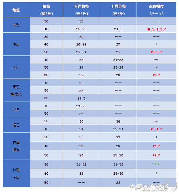 | 中國水產頻道報道, 文/水產前沿 植銀素 【本欄目由《水產前沿》、“西瑞動保”聯合制定,助各養殖朋友,養得好、賣得好!】 本周新聞 本周全國對蝦主產區價格持續回溫,多地出現不同幅度的上漲。珠三角地區由于冬棚蝦存塘逐漸減少,江門、中山漲勢較為明顯;上周山東工廠化蝦價出現罕見崩盤,直接下滑9元/斤,但本周又迎來大幅度增長,漲幅高達11元/斤,蝦價猶如坐上了過山車,養殖戶始料未及,市場行情難以把控。 業內人士預計,隨北方地區工廠化養殖的蝦逐漸清空,收購商南下收蝦的趨勢會逐漸明朗,目前福建漳浦、廣東湛江等地區還有一定存塘量,中小規格(40-50頭)、活力好的蝦更容易受青睞。 國內部分產區蝦價分析 華南地區 珠海:本周蝦價30頭30元/斤,40頭25-26元/斤。相比上周珠海地區白蝦價格變動不大,冬棚蝦已經存塘不多,交易逐漸進入尾聲,相比之下40頭左右規格的蝦比較吃香,一般走北運線路。 中山:本周蝦價30頭29-30元/斤,40頭26-27元/斤,50頭23-24元/斤。近期中山地區蝦價變動不大,收購商表示目前塘頭交易已經很少,冬棚蝦存塘不多,雖然價格比之前上漲,但是養殖戶出蝦正常,惜售心理不強。 江門:本周蝦價40頭28元/斤,50頭24元/斤,60頭22元/斤。本周江門地區價格上漲較為明顯,隨價格回溫,養殖戶出蝦比之前積極,只要有存塘蝦都會出,走北方市場較多,預計后期價格還能接著上漲。 陽江:本周蝦價40頭25元/斤,50頭22元/斤,60頭19.5元/斤。目前陽西地區以出高位池蝦為主,規格在30-35頭較多,存塘較足。 湛江:本周蝦價30頭30元/斤,40頭27元/斤。近一周湛江地區價格變動不大,盡管相對珠三角地區存塘量較多,價格稍有回暖卻沒有刺激交易增多。有養殖戶表示很多收購商報價積極性不高。有業務員預計近期漲價不會太明顯。 茂名:本周蝦價40頭27-28元/斤,50頭22元/斤。茂名地區近期交易較少,走活蝦市場的高質蝦價格和珠三角地區相差不大,但是品質較差的在當地冰廠收購價是40頭17元/斤。 廣西:廣西地區基本停止收蝦進入新的生產季。由于近期雨水較多,氣溫下降,暫未迎來投苗高峰。目前北海地區投苗1.5成,合浦3成,欽防地區還未開始。 福建:漳浦地區:今日蝦價30頭33元/斤,40頭30元/斤,50頭26元/斤。本周漳浦地區價格上漲趨勢明顯,漲幅1-2元/斤,隨北方白蝦貨源減少,市場需求得不到滿足,收購商找蝦積極性增高,預計后期繼續上漲的可能性較大。東山地區:30頭31-32元/斤,40條28元/斤。本周東山地區蝦價有小幅波動,但是養殖戶表示這兩天蝦販開始找蝦,行情有望好轉。 華東地區 江蘇如東:據了解去年如東秋造蝦養殖成功率只有15%-20%,真正盈利的養殖戶極少,目前如東小棚投苗較少,溫度尚未穩定,預計還有10-15天進入投苗高峰。 根據如東縣南美白對蝦協會第292期消息,協會苗檢平臺檢測結果顯示:一種新型蝦類虹彩病毒,近期在如東苗種市場已有陽性檢出。蝦虹彩病毒發病的主要癥狀是:感染的南美白對蝦停止攝食,空腸空胃,部分蝦通體發紅,甲殼顏色變淺,導使腹節分節明顯,蝦肝胰腺顏色變淡或發白。 防治的辦法:蝦虹彩病毒病與其它病毒性病毒一樣,目前尚無特效藥,唯以預防為主。主要從幾以下方面預防:1)加強病原檢測,盡可能不讓攜帶病原的蝦苗進入養殖過程;2)謹慎用藥。癥狀發生時應及時檢測水質并檢測病毒,不能用一些刺激性的消毒制劑及抗生素(抗生素對蝦虹彩病毒無效),而使用一些提高免疫力等功能性藥物;3)改善水體環境,疾病發生時,應緩和改善水體環境,適當提高增氧,同時適當停止投喂等。 北方地區 山東東營:今日蝦價20頭45元/斤,30頭35元/斤,40頭33元/斤。本周山東地區(工廠化)蝦價猶如坐上過山車,繼上周狂跌9元后上漲幅度最高達12元/斤。北方地區貨源極少,收購商都已經南下找蝦來滿足市場,業內人士表示有這種這么大的浮動是市場供需原因,養殖戶看準時機出蝦很重要。 河北:唐山:27頭32元/斤;黃驊:20頭37元/斤,30頭34元/斤,40頭27-28元/斤。黃驊地區目前存蝦很少,以大規格蝦為主,年后價格一直不理想,隨存蝦越來越少,近日開始有回漲跡象。 養殖小貼士 高密度對蝦養殖模式中隨著放苗密度的增加,天然的餌料已經不能滿足對蝦的生長需要,很多養殖戶仍然在對蝦長到3cm之前都在養水,造成對蝦營養缺乏,身體虛弱,抗病力弱,容易發病。 在對蝦養殖前期,根據對蝦放苗密度,及時觀察對蝦的攝食及胃腸食物情況,隨著生長慢慢增加前期對蝦所需的營養。 及時補鈣既可以改善對蝦的攝食,又能保證蝦苗的營養需要,提高對蝦活力,增強免疫力,減少發病的幾率,獲得良好的經濟效益。 吃料慢的問題剖析及解決方案 1.腸胃病 腸炎、白便都屬于腸胃病,一般而言腸炎是細菌病,也可能是肝臟受損,水體環境和水體環境帶有細菌和霉菌都很容易引起對蝦得腸胃疾病。往往腸炎或白便的情況下,對肝臟的排毒也是巨大的。所以吃料慢也是必然的。建議:提前預防,定期投喂:乳酸菌、楊樹花等調理腸道。 2.寄生蟲病 蝦的寄生蟲主要有三種:纖毛蟲、孢子蟲、甲殼類原蟲。 纖毛蟲與甲殼類原蟲都是寄生在蝦的體表、附肢及鰓上。 孢子蟲主要是寄生在蝦的肌肉里,肉眼看,蝦的后半身肌肉一直都是發白的,這寄生蟲很少見,也很難根治,有的話,建議拌驅蟲的藥,六黃潑水也有效。 3.缺氧 缺氧一般在中后期較容易出現,早期剛放苗時,養殖戶沒注意開增氧機也會出現缺氧浮