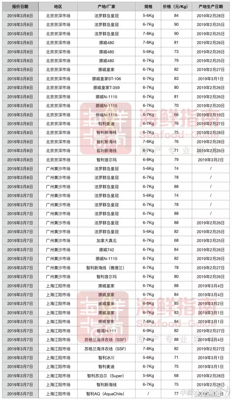 | 中國水產頻道原創報道, 文/ 海鮮指南(seafood-guide)沈基文 先更新一下各地今天的三文魚報價: 再來播報一下行業新聞: 2月21日上午,北京市朝陽區管莊地區辦事處城管隊聯合地區食藥所、工商所對管莊鄉旺角小區雙柳北街1號院一家進口魚的黑加工作坊進行綜合整治。 圖為查處現場。來源:千龍網 從現場圖片來看,正在加工的進口魚疑似大西洋鮭(三文魚)。各職能部門根據職責對該加工點違法行為進行整治。工商所檢查發現該加工點有營業執照,但是營業執照注明的地點并不在此,屬于持照異地經營。食藥所檢查發現該加工點各項衛生條件不符合要求。食藥所和工商所依法對該加工點進行查封處理。該加工點未按規定收集、交運、處理餐廚垃圾,管莊城管隊按照《北京市生活垃圾管理條例》的有關規定對黑魚坊進行處罰。 截止到目前,北京、上海、廣州、深圳等多地均出臺了政策嚴厲管控生食水產品的售賣、加工小作坊的合規問題,以防食品安全問題出現。附鏈接: 查處背后,透露出一個重要信息:違法、違規的水產品加工作坊不可取,不僅環保問題需要重視,食品安全是最嚴防線,還在經營不合規的水產品加工小作坊該停下來了。 聲明: 1、本文所提三文魚均指大西洋鮭; 2、報價均為進口商批發價,與零售/餐飲/酒店渠道報價不相等,請勿對號入座。 |