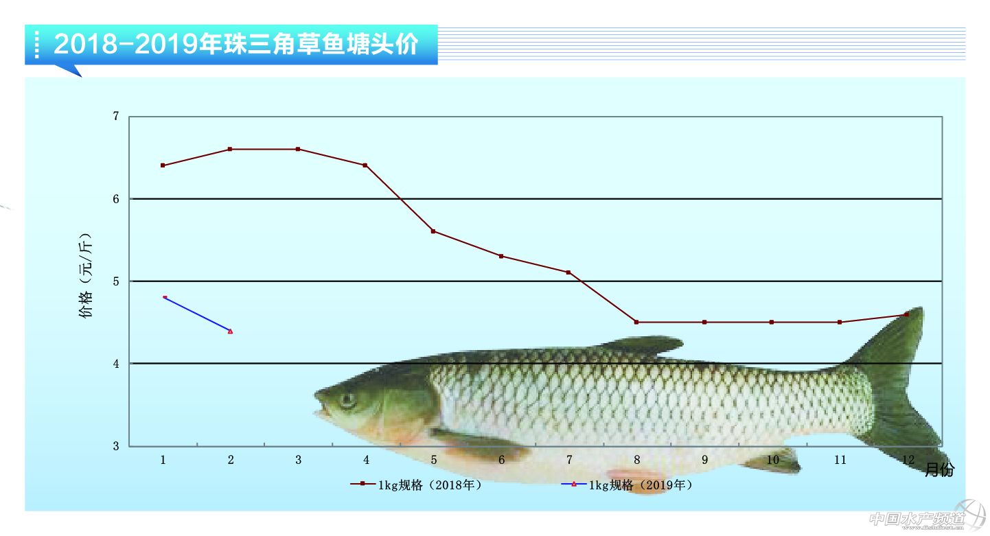 中國水產頻道獨家報道, 河源、惠州等地:草魚苗種1兩規格的6.2元/斤;小草魚1.5-2.5斤規格的4.7-4.8元/斤,3斤向上規格5.2元/斤,4斤規格5.4元/斤,5斤向上6.5元/斤; 湖北武漢、仙桃、洪湖草魚苗種:1-3兩規格4-4.2元/斤,2-3斤規格的草魚4.3元/斤,4-6斤規格草魚4.8-5.1元/斤; 湖南安鄉草魚苗種:1-3兩規格4.2元/斤,小草魚1.5-2.5斤4元/斤,3-5斤規格的草魚4.8-5元/斤;江蘇鹽城地區:2斤規格的4.5元/斤,3-5斤向上規4.8-5元/斤; 江蘇溧陽:3-4斤規格草魚4.7-4.9元/斤,泰州2斤左右規格草4.1元/斤,3斤以上規格草魚4.6元/斤,4斤-5斤規格4.9元/斤。 豬年伊始,草魚價持續低迷,全國草魚整體存塘量比去年同期偏大,魚價面臨下行壓力巨大,進城務工人群尚未大量返程,草魚消費量較少,魚價上漲乏力,根據近期天氣變化情況,預計2019年3月全國草魚價格以目前行情徘徊,不排除運輸不便的局部地區有小幅震蕩,總體不具備較大的價格上升條件。建議已經清塘的草魚養殖戶在當下做好魚塘修整、清淤筑堤、殺蟲消毒的基礎工作,為今年做好套養、反季養殖等規劃;達到上市規格草魚存塘量大的養殖戶,為了不影響年度養殖節奏,盡可能不賭不等魚價,及時清塘降低存塘風險。(重慶開洲九鼎科技開發有限公司 馬林) |