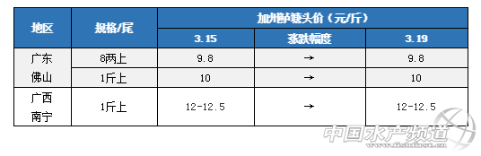 | 中國水產頻道報道, 3月19日各產區加州鱸塘頭價行情 文/圖 水產前沿 李曉欣 從廣東多家苗場獲悉,目前加州鱸水花價格在45-50元/萬尾左右,相比前段時間35-40元/萬尾上漲了10元/萬尾。 據介紹,近期廣東多雨水天氣,加上正值加州鱸苗爛嘴爛尾高發期,許多養戶的苗塘損耗嚴重,需要購買苗種重新投放。另外,江浙等外省區域近期也在陸續清塘放苗,到廣東購買棕片魚卵增多,很多苗場供應緊張,訂單已經排到了下個月,后市看漲。 加州鱸水花 成魚方面,近來各產區加州鱸行情以持穩為主,塘頭價變動不大。據中國天氣網消息,這幾天我國大部分地區都開啟了升溫模式,但今年以來最為刺激的一次大降溫正來襲。 今天(19日)起至22日,一股較強冷空氣將自西向東、自北而南影響我國大部分地區,沙塵、雨雪、強對流、大風一個都不少。本次寒潮強度較強、影響范圍廣且降溫猛烈,局地降溫近20℃,三天跨三季,可稱之為“換季式”寒潮。 3月19日14時-23日20時全國大風降溫預報圖(圖自中國天氣網) 受冷暖空氣共同影響,黃淮、江淮、江南、華南、西南地區東部等地將有一次明顯降雨過程,量級可達中到大雨、局地暴雨。近期天氣變化大,建議養殖戶做好魚塘管理工作,減少養殖風險,根據自身情況合理安排出魚時機,確保養殖收益。 產區加州鱸塘頭價及行情簡析 華南地區 廣東佛山:今天報價8兩上9.8元/斤,1斤上10元/斤,近期價格較為平穩,實際成交價根據8兩上比例和魚頭大小略有浮動。目前市場上對大規格魚的需求量比較大,部分養戶擔心魚超大而選擇出一部分魚。受天氣影響,近期補苗和放苗的養戶增多,苗種供不應求。 廣西南寧:今天1斤上加州鱸報價12-12.5元/斤,由于存塘魚達上市規格較少,養戶出魚積極性不高,流通商多到廣東收魚,部分養戶開始清塘放苗。 華東地區 浙江湖州:湖州養戶近期清塘放苗增多,當地出魚量增多,今天報價8兩上報價10元/斤,統貨是8.5-9元/斤,養戶以出統貨規格為主。 江蘇吳江:目前吳江有部分養殖戶開始出魚,空出魚塘準備培苗,出魚量有所增多,今天8兩上報價10元/斤,9兩上10.5元/斤,價格以持穩為主。 華中地區 湖北武漢:武漢9兩上加州鱸今天報價11-11.5元/斤,行情較為穩定。 湖南華容:華容9兩上加州鱸今天報價11-11.5元/斤,部分養戶想趕在產卵季前出魚,出魚較為積極,當地走量有所加大。 西南地區 四川成都:成都今天報價9兩上13元/斤左右,現在當地存塘魚達上市規格的減少,養戶出魚積極性不高。 |
