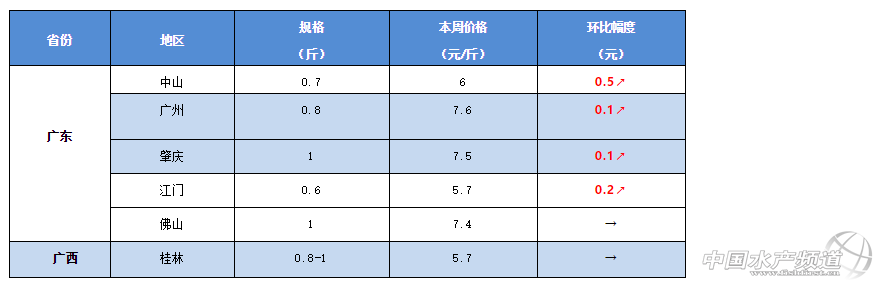 一周要聞 中國(guó)水產(chǎn)頻道原創(chuàng)獨(dú)家報(bào)道,春暖花開(kāi),萬(wàn)物復(fù)蘇!最近全國(guó)各地氣溫開(kāi)始明顯回升,目前廣東廣州地區(qū)白天的氣溫已經(jīng)達(dá)到27℃,湖北武漢的最高氣溫也已經(jīng)達(dá)到20℃。不過(guò),清明和白露一直是養(yǎng)魚(yú)最難過(guò)的兩個(gè)關(guān)口,隨著氣溫的升高最近很多魚(yú)塘也都開(kāi)始出現(xiàn)問(wèn)題。據(jù)了解,最近廣西貴港地區(qū)很多魚(yú)塘一天都有10多條死,客戶(hù)要魚(yú)養(yǎng)殖戶(hù)卻不敢刮網(wǎng),生怕一動(dòng)就更嚴(yán)重了。最近華中的武漢地區(qū)晝夜溫差最高達(dá)到13℃,很多池塘也是發(fā)病特別嚴(yán)重。養(yǎng)殖戶(hù)表示,江西贛州地區(qū)很多養(yǎng)殖戶(hù)一天要撈幾百斤死魚(yú),前天有一個(gè)150畝水庫(kù)死了20000多斤魚(yú)。最近湖南常德有一些池塘一天死1000多斤魚(yú),養(yǎng)殖戶(hù)表示現(xiàn)在的魚(yú)病特別難治,養(yǎng)了幾十年的魚(yú)從來(lái)沒(méi)見(jiàn)過(guò)。 發(fā)病的魚(yú)塘 隨著氣溫回升,全國(guó)各地的魚(yú)價(jià)行情也開(kāi)始緩慢回暖,鯽魚(yú)的塘頭價(jià)也是呈現(xiàn)上漲趨勢(shì)。從養(yǎng)殖了解到,最近魚(yú)流通明顯快了很多,目前福建閩江一個(gè)碼頭一天最少賣(mài)兩三萬(wàn)魚(yú),很快魚(yú)就不夠賣(mài)了。目前廣東中山地區(qū)6兩以上的鯽魚(yú)塘頭已經(jīng)賣(mài)到6元/斤,較之前最高上漲了0.5元/斤,這兩天四川內(nèi)江地區(qū)的魚(yú)價(jià)也已經(jīng)開(kāi)始有所上調(diào)。從各魚(yú)種場(chǎng)了解到,湖南湘陰地區(qū)2018年鯽魚(yú)夏花是近十年來(lái)銷(xiāo)量最小的,今年受前期魚(yú)價(jià)影響,轉(zhuǎn)養(yǎng)和棄養(yǎng)的養(yǎng)殖戶(hù)很多,能堅(jiān)持的到目前放苗的養(yǎng)殖戶(hù)數(shù)量也是近幾年最少的。業(yè)內(nèi)人士表示,今年的下半年鯽魚(yú)和草魚(yú)市場(chǎng)有可能會(huì)出現(xiàn)青黃不接的現(xiàn)象,下半年魚(yú)價(jià)行情很值得期待。您對(duì)未來(lái)魚(yú)價(jià)行情有怎樣的預(yù)期,歡迎留言分享! 本周行情 華南地區(qū) 隨著清明的臨近,最近華南地區(qū)的整體魚(yú)價(jià)行情也開(kāi)始緩慢回暖。目前中山地區(qū)6兩以上的鯽魚(yú)塘頭已經(jīng)賣(mài)到6元/斤,較之前最高上漲了0.5元/斤。清明和白露一直是養(yǎng)魚(yú)最難過(guò)的兩個(gè)關(guān)口,隨著氣溫的升高最近華南地區(qū)的很多魚(yú)塘也都開(kāi)始出現(xiàn)問(wèn)題。從養(yǎng)殖戶(hù)了解到,目前廣州白天的最高氣溫已經(jīng)達(dá)到27℃。隨著氣溫升高,最近珠三角的江門(mén)、佛山等地區(qū)很多魚(yú)塘也開(kāi)始出現(xiàn)零星死魚(yú);最近廣西貴港地區(qū)很多魚(yú)塘一天都有10多條死,客戶(hù)要魚(yú)養(yǎng)殖戶(hù)卻不敢刮網(wǎng),生怕一動(dòng)就更嚴(yán)重了。 中山:從流通商了解到,最近中山地區(qū)的鯽魚(yú)和大頭魚(yú)行情開(kāi)始有點(diǎn)起色了,目前6兩以上的鯽魚(yú)最新塘頭已經(jīng)賣(mài)到6元/斤。 江門(mén):據(jù)養(yǎng)殖戶(hù)介紹,最近江門(mén)地區(qū)整體魚(yú)價(jià)行情還是沒(méi)明顯變化,但是魚(yú)病卻是越來(lái)越多,目前很多魚(yú)塘都開(kāi)始出現(xiàn)問(wèn)題。 梅州:從業(yè)內(nèi)人士了解到,本周梅州地區(qū)魚(yú)價(jià)行情還是老樣子,最近很多地區(qū)的魚(yú)病也是多了很多,不過(guò)提前做好了消毒、調(diào)水等預(yù)防工作的養(yǎng)殖戶(hù)魚(yú)塘基本都還沒(méi)有出現(xiàn)什么問(wèn)題。 廣西:最近廣西地區(qū)的鯽魚(yú)行情還是繼續(xù)保持穩(wěn)定,最新塘頭價(jià)基本維持在5.5-6元/斤。據(jù)了解,最近桂林地區(qū)鯽魚(yú)行情還是老樣子,暫時(shí)魚(yú)還沒(méi)有怎么發(fā)病。目前貴港地區(qū)鯽魚(yú)價(jià)格繼續(xù)穩(wěn)定不變,不過(guò)最近魚(yú)也是開(kāi)始出現(xiàn)問(wèn)題,很多魚(yú)塘一天都有10多條死魚(yú)。養(yǎng)殖戶(hù)表示,很多最近養(yǎng)殖戶(hù)不敢隨便刮網(wǎng),生怕一動(dòng)就更嚴(yán)重了。 華中地區(qū) 最近華中地區(qū)正是春暖花開(kāi)的時(shí)候,目前武漢的白天氣溫已經(jīng)達(dá)到20℃了,不過(guò)夜間氣溫最低只有6℃,一天中最大溫差達(dá)到13℃。雖然最近魚(yú)價(jià)開(kāi)始出現(xiàn)緩慢回升,但也正是這樣巨大的溫差導(dǎo)致最近華中很多地區(qū)的池塘發(fā)病特別嚴(yán)重。據(jù)了解,最近贛州地區(qū)魚(yú)價(jià)漲了一點(diǎn),但是魚(yú)病也開(kāi)始爆發(fā),很多養(yǎng)殖戶(hù)一天要撈幾百斤死魚(yú),前天有一個(gè)150畝水庫(kù)死了20000多斤魚(yú)。最近湖南邵陽(yáng)、常德、安鄉(xiāng)等地區(qū)很多魚(yú)塘發(fā)病非常嚴(yán)重。據(jù)了解,常德有一些池塘一天死1000多斤魚(yú),發(fā)病早的已經(jīng)持續(xù)半個(gè)月了,養(yǎng)殖戶(hù)表示現(xiàn)在的魚(yú)病特別難治,養(yǎng)了幾十年的魚(yú)從來(lái)沒(méi)見(jiàn)過(guò)。目前湖北大部分地區(qū)魚(yú)價(jià)也是在緩慢回升,其中隨州地區(qū)鯽魚(yú)行情開(kāi)始有明顯好轉(zhuǎn),不過(guò)目前洪湖地區(qū)魚(yú)價(jià)還是沒(méi)有好轉(zhuǎn),近期也是有魚(yú)苗出現(xiàn)死亡。本周河南地區(qū)魚(yú)價(j