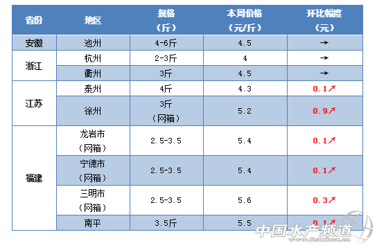 | 中國(guó)水產(chǎn)頻道報(bào)道, 文/ 水產(chǎn)前沿 鄭鵬飛 一周要聞 清明是中國(guó)傳統(tǒng)中一個(gè)重要的節(jié)日,每年這個(gè)時(shí)候水產(chǎn)品消費(fèi)量都會(huì)出現(xiàn)一個(gè)小高峰。據(jù)了解,最近很多的流通商都在積極的備貨,這幾天多個(gè)地區(qū)出現(xiàn)魚車排隊(duì)搶魚的場(chǎng)面。據(jù)養(yǎng)殖戶介紹,最近江蘇駱馬湖的魚車已經(jīng)連續(xù)多天就在排長(zhǎng)隊(duì),拉魚的輪渡一天都要跑4-5趟,一個(gè)渡口一天就要賣60萬斤魚。受流通拉動(dòng),最近徐州地區(qū)3斤的草魚已經(jīng)漲到5.2元/斤;福建地區(qū)草魚塘頭價(jià)最高也漲到了5.6元/斤,最高上漲0.3元/斤;最近兩天湖北武漢地區(qū)3斤的草魚已經(jīng)賣到4.4-4.6元/斤;今天隨州地區(qū)3斤的草魚漲了0.5元/斤,最新塘頭價(jià)漲到4.5元/斤;最近江西樟樹地區(qū)草魚一天一個(gè)價(jià), 3斤以上的賣到4-5.6元/斤。目前華中很多地方正是喂黑麥草的時(shí)候,養(yǎng)殖戶都希望喂完草再賣魚,導(dǎo)致最近流通商開始四處找魚,草魚行情有望繼續(xù)回暖。 今日行情 華南地區(qū) 明天就是清明節(jié)了,雖然往年這個(gè)時(shí)候華南的草魚行情一般也會(huì)有所回暖,但是就目前來看情況不是很樂觀。據(jù)了解,隨著舊魚流通的稍微好轉(zhuǎn),近期草魚苗種的行情整體有所回暖,但是成魚的整體行情還是沒有出現(xiàn)明顯好轉(zhuǎn),部分市場(chǎng)甚至出現(xiàn)下滑現(xiàn)象。從養(yǎng)殖戶和流通商了解到,目前中山地區(qū)各規(guī)格的草魚苗種較上周整體上漲0.1元/斤左右, 3-7兩的草魚苗種最新塘頭價(jià)4.8元/斤;開平地區(qū)3斤左右的草魚最新報(bào)價(jià)4.5元/斤;肇慶、佛山地區(qū)的草魚塘頭價(jià)只有4.1-4.3元/斤;廣西地區(qū)草魚整體行情也還是比較低迷,其中欽州、貴港、橫縣等地區(qū)最新塘頭價(jià)基本還是維持在5元/斤左右。養(yǎng)殖戶表示,隨著氣溫升高魚病又開始多起來了,而行情還是依舊低迷,養(yǎng)魚太難。 江門:本周江門地區(qū)草魚行情還是沒有出現(xiàn)明顯的好轉(zhuǎn)。從流通商了解到,目前鶴山地區(qū)4斤的草魚最新塘頭價(jià)4.5元/斤,部分地區(qū)上漲了0.2元,最新報(bào)價(jià)4.7元/斤;臺(tái)山開平地區(qū)除了鯪魚行情比較好外其他魚都還不是很理想,目前鯪魚塘頭價(jià)可以賣到6.4元/斤, 3斤左右的草魚最新報(bào)價(jià)4.5元/斤。 梅州:目前梅州地區(qū)2-4斤的草魚還是以5.2元/斤為主,5斤起的大草魚價(jià)格較上周漲了1-2毛錢,業(yè)內(nèi)人士表示最近流通量大了一些。 中山:據(jù)了解:隨著成魚流通的逐漸好轉(zhuǎn),最近育種的行情整體有小幅回升,最近各規(guī)格的草魚苗種較上周整體上漲0.1元/斤左右,目前3-7兩的草魚苗種最新塘頭價(jià)4.8元/斤。 肇慶:據(jù)了解,本周肇慶地區(qū)草魚最新塘頭價(jià)繼續(xù)維持在4.3元/斤左右,養(yǎng)殖戶表示就目前情況來看近期可能價(jià)格漲不了了。 佛山:本周佛山地區(qū)的草魚行情也還是沒有明顯上漲,塘頭價(jià)基本也還是維持上周水平。有養(yǎng)殖戶表示,昨天剛賣的草魚塘頭價(jià)只有4.1-4.3元/斤,最高也就賣到4.3元/斤。 廣西:從最新了解到的情況來看,目前廣西地區(qū)的草魚行情還是沒有好轉(zhuǎn)的跡象,最新塘頭價(jià)也是基本保持不變。據(jù)養(yǎng)殖戶介紹,目前欽州地區(qū)草魚最新塘頭價(jià)5元/斤;桂林3斤草魚最新塘頭價(jià)繼續(xù)維持在4元/斤;貴港地區(qū)3斤草魚最新報(bào)價(jià)5元/斤;養(yǎng)殖戶表示,隨著氣溫升高魚病又開始多起來了,而行情還是依舊低迷,養(yǎng)魚太難。 華中地區(qū) 最近華中地區(qū)的草魚行情也開始有大動(dòng)作了,多個(gè)地區(qū)行情開始飄紅。據(jù)了解,最近兩天湖北武漢地區(qū)3斤的草魚已經(jīng)賣到4.4-4.6元/斤,0.9-1.2斤的鳊魚也可以賣到5.2-5.3元/斤;今天隨州地區(qū)3斤的草魚漲了0.5元/斤,最新塘頭價(jià)漲到4.5元/斤;最近江西樟樹地區(qū)草魚一天一個(gè)價(jià), 3斤以上的賣到4-5.6元/斤。目前湖南常德、江西南昌、河南鄭州、開封等地區(qū)的草魚行情也開始有小幅回升。最近華中很多地方正是喂黑麥草的時(shí)候,很多養(yǎng)殖戶暫時(shí)都不準(zhǔn)備賣魚,希望喂完這批黑麥草再看行情賣魚。這也導(dǎo)致現(xiàn)在部分市場(chǎng)開始出現(xiàn)缺貨的現(xiàn)象,加上清明節(jié)日臨近,這兩天商販開始四處找魚,近期華中的草魚行情有望繼續(xù)回暖。 江西:本周江西地區(qū)的草魚行情開始逐漸回升了。據(jù)了解,目前吉安地區(qū)3斤左右的草魚最新報(bào)價(jià)4.4元/斤,較之前開始有所回升;目前樟樹地區(qū)草魚一天一個(gè)價(jià),小規(guī)格的塘頭價(jià)賣3.8元/斤,3斤以上的賣4-5.6元/斤。養(yǎng)殖戶表示,最近南昌地區(qū)的草魚塘頭價(jià)也是有小幅回升。 湖南:本周湖南地區(qū)草魚穩(wěn)中有升,整體上變化幅度不大。其中,岳陽、常德整體保持穩(wěn)定,個(gè)別地區(qū)塘頭價(jià)稍有好轉(zhuǎn)。據(jù)養(yǎng)殖戶介紹,雖然行情開始有點(diǎn)起色了,但是最近的草魚也是開始大量發(fā)病,目前已經(jīng)有很多養(yǎng)殖戶損失慘重。 湖北:本周湖北有部分地區(qū)草魚行情開始出現(xiàn)喜人上漲。據(jù)了解,目前武漢地區(qū)3斤的草魚已