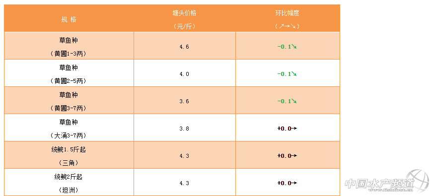 草魚:魚種流通慢,價格小幅下滑