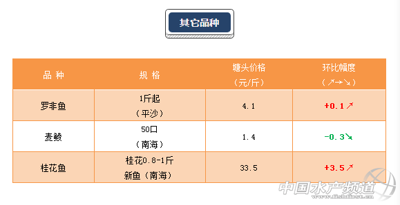 中國(guó)水產(chǎn)頻道原創(chuàng)報(bào)道, 文/ 珠海海龍 水產(chǎn)前沿 吳佳輝 淡水特種魚(yú):生魚(yú)需求量加大,行情好轉(zhuǎn) 海水特種魚(yú):本周海繼續(xù)下滑,后市預(yù)計(jì)持續(xù)低迷 鱸魚(yú) 本周魚(yú)價(jià)繼續(xù)下行,受低壓天氣影響,本周因缺氧浮頭死魚(yú)而出魚(yú)的鱸魚(yú)較多,市場(chǎng)需求不變的情況下,魚(yú)價(jià)下行,后市預(yù)計(jì)會(huì)繼續(xù)受天氣影響而行情低迷。 立魚(yú) 珠海小林:市場(chǎng)出魚(yú)量增加,以大規(guī)格立魚(yú)為主(4.6兩上),并且近期天氣適合立魚(yú)生長(zhǎng),且病害少,客戶養(yǎng)殖積極性較高,所以立魚(yú)價(jià)格穩(wěn)定。 珠海斗門(mén):近期出魚(yú)量較少,價(jià)格較上周有小幅上漲。 盲曹 統(tǒng)級(jí)10.5元/斤;大魚(yú)打冰10.5元/斤。 黃花 級(jí)魚(yú)存塘數(shù)量不多,價(jià)格逐步上升。大魚(yú)需求少,價(jià)格穩(wěn)定,今年黃花放苗同比減少,預(yù)計(jì)禁漁期新魚(yú)數(shù)量不多,后續(xù)看漲。 【關(guān)鍵字】:海水特種魚(yú) 價(jià)格行情 水產(chǎn)養(yǎng)殖 |