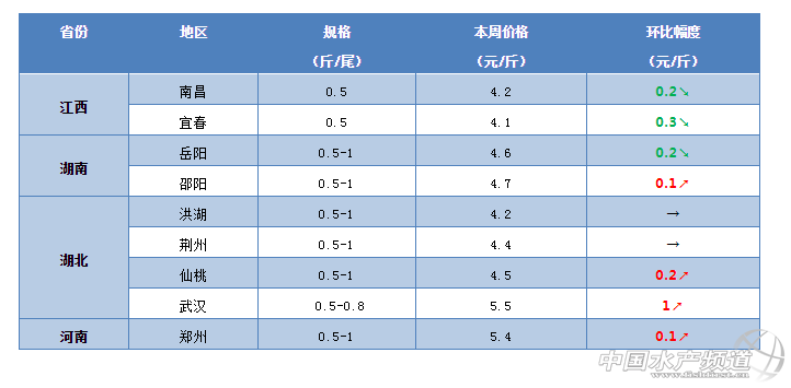 | 中國水產頻道原創報道, 五一臨近,流通商積極備貨!近期塘頭再現魚車排隊搶魚景象,江蘇鯽魚已經賣到9元/斤,珠三角半斤以規格全線突破6元大關,1斤以上的塘頭價7.5元/斤!存塘魚有限,鯽魚行情有望進一步回暖。 文/ 水產前沿 鄭鵬飛 魚車排隊搶魚 一周要聞 隨著“五一”小長假的臨近,近期各大水產市場進入搶購熱潮,多個水產品種行情出現暴漲。華東作為鯽魚的主產區,近期鯽魚塘頭價格出現強勢上漲,大部分地區漲幅超過1元/斤。據了解,今天江蘇地區鯽魚塘頭價已經賣到9元/斤,為了節日備貨,大批魚車排隊搶魚。目前,泰州地區9兩的鯽魚賣到6.3元/斤,相比上周再次上漲了0.5元/斤;鹽城地區1.2斤以上的鯽魚塘頭價8.5元/斤,漲幅超過1元/斤;目前湖北武漢地區鯽魚最新塘頭價已經賣到5.5-6.5元/斤,相比之前最大漲幅接近2元/斤;湖南常德地區鯽魚價格上漲0.3元/斤,1斤以上的湘云鯽塘頭價賣到4.5-4.6元/斤;有養殖戶表示,目前淮安地區的鯽魚塘頭價每天都在漲;福建南平地區鯽魚最新塘頭價5.8元/斤,上漲0.4元/斤;上海大部分地區的鯽魚塘頭價突破6元/斤,部分地區已經突破7元/斤。本周華南地區的鯽魚行情也是整體呈現回暖趨勢,目前中山地區半斤的鯽魚塘頭價基本都已超過6元/斤,部分地區1斤以上的已經賣到7.5元/斤;肇慶地區6兩鯽魚最新報價6.1元/斤,上漲0.3元/斤,養殖戶表示節后有望漲到6.5元/斤。本周東北地區的鯽魚塘頭價暫時沒有明顯變化,不過養殖戶表示最近市場價格也是開始出現好轉,目前沈陽地區已經可以賣到6.2-6.3元/斤。 近期江西部分地區鯽魚塘頭價出現小幅下滑,銷量較之前也是有所減少,湖南岳陽地區的鯽魚塘頭價較上周也是下滑了0.2元/斤,華中部分養殖戶對于目前的魚價行情表示很無奈。不過,隨著五一小長假的來臨,節日消費需求的拉動加上禁漁導致的海鮮斷貨已經使得各地水產品市場開始積極備貨,目前多個淡水品種行情已經出現暴漲。面臨各種海產品的斷貨,目前各種海產品相比往年的價格上漲了約3-5成,目前帶魚已經賣到30元/斤,小黃魚超過40元/斤,大連海鮮市場螃蟹最高賣到180元/斤。而且,近期華中、華東、華南大部分地區新的養殖周期已經正式開始,目前剩下還沒有干塘的魚塘已經不多,節后鯽魚行情有望進一步回暖。 本周行情 華南地區 隨著五一小長假的來臨,節日消費需求的拉動加上禁漁導致的海鮮斷貨,使得近期水產品市場也是積極備貨,多個淡水品種行情看漲。本周華南地區的鯽魚行情也是整體呈現回暖趨勢,目前中山地區鯽魚塘頭價基本都已超過6元/斤,有部分地區賣到7元/斤;肇慶地區塘頭價上漲0.3元/斤,最新報價6.1元/斤,節后有望漲到6.5元/斤;目前廣西地區的鯽魚行情還是沒有明顯變化,大部分塘頭價還是維持在5.5-6元/斤之間。 中山:據養殖戶介紹,目前中山地區大部分鯽魚塘頭價已經超過6元/斤,0.7斤的最新塘頭價維持在6.3元/斤,1斤以上的已經賣到7.5元/斤,預計節后價格還會繼續上漲。 肇慶:本周肇慶地區鯽魚最新塘頭價6.1元/斤,較上周上漲了0.3元/斤,養殖戶表示節后很可能會漲到6.5元/斤。 廣西:目前廣西地區的鯽魚行情還是沒有明顯變化。據養殖戶介紹,昨天桂林地區的鯽魚塘頭價還是維持在5.5元/斤,到目前為止來賓地區的鯽魚塘頭價還是維持上周水平。 華中地區 本周華中地區鯽魚行情有漲有跌,其中湖南和湖北部分地區上漲比較明顯,本周江西地區鯽魚行情還是比較低迷,部分地區塘頭價出現小幅下滑。從養殖戶了解到,目前湖北武漢地區鯽魚最新塘頭價已經賣到5.5-6.5元/斤,相比之前最大漲幅接近2元/斤;湖南常德地區鯽魚價格上漲0.3元/斤,1斤以上的湘云鯽塘頭價賣到4.5-4.6元/斤;最近江西南昌地區鯽魚價格出現小幅下滑,銷量較之前也是有所減少;有養殖戶反映,最近湖南岳陽地區的鯽魚塘頭價較上周下滑了0.2元/斤,最新塘頭價4.6元/斤左右。雖然節假日來臨,但是由于個別市場行情出現反常下跌,養殖戶對于近期的行情還是不敢隨便預測。 江西:本周江西地區的鯽魚行情還是不太好,部分地區再次出現小幅下滑。養殖戶表示,目前南昌地區鯽魚價格也是跌了一點,銷量也有所下降,部分地區塘頭價還是4元/斤。養殖戶表示,目前的魚價行情不好說,總是漲一點就感覺魚似乎不夠賣,價格掉一點又感覺魚多了賣不掉,后期行情還是市場說了算,不敢隨便預測。 湖南:本周湖南地區鯽魚行情整體還是穩中有升,其中常德地區鯽魚價格較之前上漲0.3元/斤,1斤以上的湘云鯽塘頭價賣到4.5-4.6元/斤;岳陽地區的鯽魚最新塘頭價比之前下滑了0.2元/斤,常德養殖戶表示具體行情誰也說不準。 湖北:本周湖北大部分地區的鯽魚行情還是以穩定為主,不過有部分地區上漲勢頭迅猛。從養殖戶了解到,目前武漢地區鯽魚最新塘頭價已經賣到5.5-6.5元/斤,相比之前最大漲幅接近2元/斤;最近隨州地區鯽魚還是維持在5元/斤左右,養殖戶表示當地豬肉價格也是沒怎么漲,魚價暫時也是沒有太大變化;本周洪湖地區的魚價還不是很好,目前草魚還是賣4元/斤,鯽魚還要看魚定價,暫時沒有明顯上漲。 華東地區 華東作為鯽魚的主產區,近期鯽魚塘頭價格出現強勢上漲,多個地區漲幅超過1元/斤。從流通商了解到,目前江蘇地區鯽魚塘頭價已經賣到9元/斤,而且塘頭一堆魚車排隊搶魚,僧多粥少;有養殖戶表示,目前泰州地區9兩的鯽魚賣到6.3元/斤,相比上周再次上漲了0