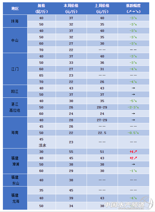 | 中國水產頻道原創報道, 5月8日南美白對蝦各產區塘頭報價 文/水產前沿 植銀素 【本欄目由《水產前沿》、“西瑞動保”聯合制定,助各養殖朋友,養得好、賣得好!】 本周新聞 如東鍋爐加溫早苗養殖蝦4月15日相繼進入銷售,開稱最高單價54元,比上一年開稱價高12元。連續兩周蝦價領跑全國!業內人士推測目前國內仍處于缺蝦狀態,加上4月末至今雨水增多,兩廣地區蝦上市少,長速慢,發病多是如東行情高漲原因之一。 本周珠三角對蝦行情不容樂觀,中山地區價格再降4元/斤,珠海、江門、湛江等地跟跌2-4元。養殖戶表示近期雨水增多,連著幾天降溫,已經造成多地對蝦發病嚴重。據筆者了解,中山地區塘口發病達到5成,陽江地區發病達到4成。業內人士建議下雨前可用黑土穩定水質,養殖戶可適當潑灑多維或其他防應激產品(可用VC十葡萄糖),配合補鈣,增強對蝦體質;減少喂料(土塘可暫時停料);晚上用過硫和增氧粒改底。廣東陽江和海南地區整體行情較穩定。 近期,受冷空氣影響,我國出現大范圍降雨天氣,尤其是廣東天天暴雨刷屏,給對蝦養殖帶來了嚴重影響。8日至9日,西藏東南部、四川中部、華南大部等地有中到大雨,其中,廣西南部沿海、廣東西南部沿海、海南島等地局地有暴雨。9日至10日,西藏東南部、四川南部、廣東中東部、海南島等地的部分地區有中到大雨,其中,西藏東南部局地有暴雨。 國內部分產區蝦價分析 華南地區 中山、珠海:40條37元/斤,50條32元/斤,60條27元/斤,70條22元/斤。本周中山地區價格再次出現下調,整體下降2-3元/斤。有業務員表示近期由于雨水不斷,加上降溫,中山地區塘口對蝦發病將近5成,情況較為嚴峻。 江門:本周蝦價40條37元/斤,50條33元/斤,60條27元/斤,65條23元/斤,70條22元/斤。目前江門地區仍然處于缺蝦狀態,但是價格跟跌3-4元,降幅較大。養殖戶表示持續陰雨天氣,氣溫也下降不少,對蝦產生應激、發病;周邊不少塘口出現偷死,但單個塘情況不算嚴重。 陽江:本周蝦價40頭43元/斤,50條37元/斤。本周陽江地區蝦價維穩為主,但是養殖情況同樣不樂觀。近一周受大風、降水、降溫影響,該地區整體發病率達到4成,情況嚴重,暫時排塘情況不多。現在投苗大約30天,已經漸成規格(300頭左右),業內人士建議養殖戶應以防護為主。目前上市的下不多,小規格蝦為主。 湛江:本周蝦價40條30元/斤,50條26元/斤,60條24元/斤。近段時間雨水充足,蝦發病率比較高,該地區有4成左右塘蝦發病。 海南:本周蝦價淡水45頭23元/斤,海水蝦40條28元/斤,45條26元/斤,50條22元/斤。本周海南蝦價暫時維穩,價格沒有變動的趨勢。 福建:漳浦地區:30條55元/斤,40條45元/斤,50條38元/斤,60條29元/斤。養殖戶表示本周漳浦地區蝦價行情較穩定,尤其小蝦;大蝦暢銷,30-40條蝦價格上漲4元/斤。龍海地區:35條45元/斤,40條39元/斤,50條34元/斤。養殖戶表示近期雨水較足,暫時未造成蝦子發病,但是水質不穩定,蝦吃料慢,長速也慢,預計今年早造蝦上市較晚,對蝦貨源仍然緊缺。 華東地區 江蘇如東:40條45元/斤,50條40元/斤,60條36元/斤,70天32元/斤,80條25元/斤。今年如東開市行情一直紅火,對比上周同期,40條規格的蝦最高漲5元/斤,養殖戶表示今年蝦價比去年同期增長10-12元/斤!近期養殖情況正常,上市蝦有限,預測后市價格維穩,出蝦也會慢慢增多。 北方地區 山東日照:今日蝦價30頭40元/斤,40條36元/斤。近期日照地區蝦價下跌明顯,由于價格下跌,養殖戶更集中出蝦,造成短暫惡性循環,業內人士建議養殖戶需慎重應對。 遼寧營口:今日蝦價30-32頭44-45元/斤,40頭41元/斤。營口地區供應大蝦較多,整體行情維穩。 養殖小貼士 高密度對蝦養殖模式中隨著放苗密度的增加,天然的餌料已經不能滿足對蝦的生長需要,很多養殖戶仍然在對蝦長到3cm之前都在養水,造成對蝦營養缺乏,身體虛弱,抗病力弱,容易發病。 在對蝦養殖前期,根據對蝦放苗密度,及時觀察對蝦的攝食及胃腸食物情況,隨著生長慢慢增加前期對蝦所需的營養。 及時補鈣既可以改善對蝦的攝食,又能保證蝦苗的營養需要,提高對蝦活力,增強免疫力,減少發病的幾率,獲得良好的經濟效益。 吃料慢的問題剖析及解決方案 1.腸胃病 腸炎、白便都屬于腸胃病,一般而言腸炎是細菌病,也可能是肝臟受損,水體環境和水體環境帶有細菌和霉菌都很容易引起對蝦得腸胃疾病。往往腸炎或白便的情況下,對肝臟的排毒也是巨大的。所以吃料慢也是必然的。建議:提前預防,定期投喂:乳酸菌、楊樹花等調理腸道。 2.寄生蟲病 蝦的寄生蟲主要有三種:纖毛蟲、孢子蟲、甲殼類原蟲。 纖毛蟲與甲殼類原蟲都是寄生在蝦的體表、附肢及鰓上。 孢子蟲主要是寄生在蝦的肌肉里,肉眼看,蝦的后半身肌肉一直都是發白的,這寄生蟲很少見,也很難根治,有的話,建議拌驅蟲的藥,六黃潑水也有效。 3.缺氧 缺氧一般在中后期較容易出現,早期剛放苗時,養殖戶沒注意開增氧機也會出現缺氧浮頭的現象。一般缺氧后蝦軟殼,殼脫后硬不了。輕度缺氧是步足關節處及眼睛發紅。 4.物理因素突變 |