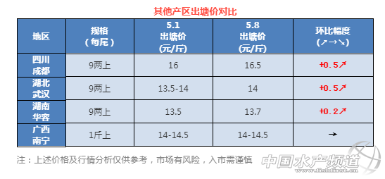| 中國水產頻道原創報道, 高達16.5元/斤,四川成都加州鱸價領跑全國 文/圖 杰大飼料 水產前沿 李曉欣 聯合發布 五一節日過后,各地加州鱸銷量恢復正常水平,但部分產區存塘量逐漸減少,本周魚價呈穩中有升態勢。本周,四川成都鱸魚上漲0.5元/斤,9兩上報價16.5元/斤,相比上月價格12.5元/斤上漲了4元/斤,目前成都及附近區域的成魚處于產卵期,達到上市規格的魚不多,養戶出魚意愿不高,魚價有所上漲。 除了四川,受存塘魚不多影響,本周湖北武漢9兩上鱸魚上漲了0.5元/斤,湖南華容鱸魚上漲了0.2元/斤,其他產區價格基本持穩。隨著各地存塘魚逐漸減少,預計魚價還有上漲空間。 今日各地加州鱸塘頭價及本周行情分析 廣東順德:今天報價8兩上13元/斤,9兩上13.5元/斤,本周價格比較穩定,目前有舊魚存塘的養殖戶惜售心理仍較強。部分打算清塘的養殖戶想再等幾天觀望周末的母親節,預計本周末需求量會有所增加。 廣東南海:今天報價8兩上13元/斤,9兩上13.5元/斤,本周價格與上周持平,節后收魚量恢復五一節前的量,但需求量依然比較大,不過本地養殖戶出魚積極性一般。近期出魚的養殖戶多是為減少存塘舊魚養殖密度,準備迎接高溫季節。 浙江湖州:今天報價8兩上12元/斤,統貨10-10.5元/斤。五一期間消費增多,湖州地區鱸魚流量比較大的,五一長假過后,本地出魚量明顯減少。 江蘇吳江:吳江鱸魚8兩報價12.5元/斤,9兩報價13元/斤,價格持穩。節后吳江地區的出魚量明顯下滑,到吳江拉魚的水車有所減少,預計近期魚價比較穩定。 四川成都:今天報價9兩上16.5元/斤,比上周升高了0.5元/斤,受外地魚車增多影響,加上成都及附近區域的成魚現處于產卵期,目前達到上市規格的魚不多,魚價有所上漲。但大多養殖戶依然選擇繼續觀望后市價格,出魚意向不高。 湖北武漢:今天武漢鱸魚9兩上報價14元/斤左右,五一過后當地鱸魚銷量有所下降,當地存塘不多,行情以持穩為主。 湖南華容:華容今天9兩上報價13.7元/斤左右,相比上周價格上漲了0.2元/斤。五一節日期間銷量上升,魚價略漲,節后銷量恢復正常水平。 廣西南寧:南寧今天1斤上鱸魚報價14-14.5元/斤左右,當地達上市規格的存塘魚不多,加上鱸魚產卵后減重,養戶出魚意愿不大,流通商多到廣東收魚。 |