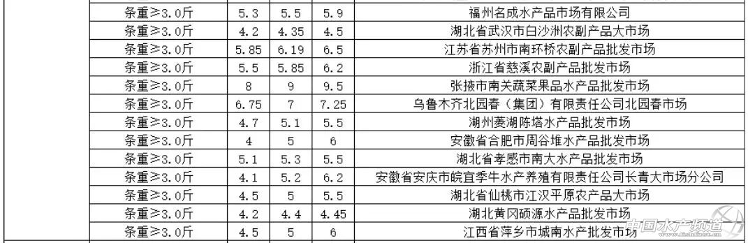 摘要: 中國水產頻道報道,全國各大市場草魚批發價最新出爐!