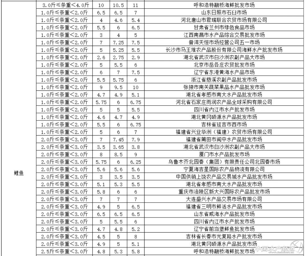 | 中國水產(chǎn)頻道報道,賣魚、收魚戶速看!5月17日最新鯉魚全國市場批發(fā)價(本文轉(zhuǎn)自【全國水產(chǎn)推廣總站、中國水產(chǎn)學會】。如有版權(quán)問題,敬請聯(lián)系wx@fishfirst.cn。) |