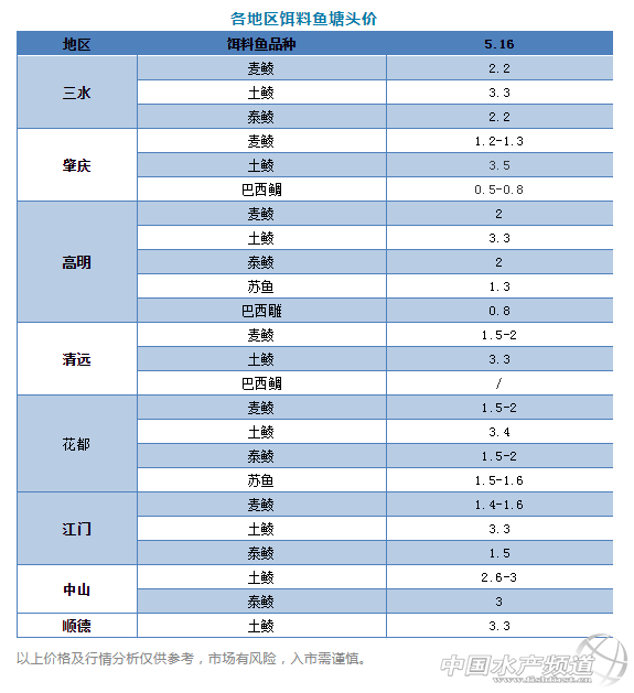 | 中國水產頻道原創報道, 行情好轉帶動養戶積極投苗,魚苗和新餌料魚貨源緊缺 文/圖 鱖鱸前沿 李靜 本周,廣東鱖魚價格再次上漲,規格較好的最高訂到35元/斤,這兩天養殖戶出魚積極性較高,塘頭訂魚價格有小幅回落,規格最好的訂34-34.5元/斤。 目前,江蘇、湖北、安徽等省份鱖魚存塘量已經不多,江西地區基本結束。從現在到2019年新魚上市前,國內鱖魚將主要依賴廣東主產區供應,那么廣東也將擁有鱖魚價格的主導權。受廣東鱖魚漲價影響,本周湖北、江蘇、湖南、安徽地區標桂大幅飆升最高3元/斤,武漢今天甚至有人塘頭抓標魚39元/斤。預計隨著鱖魚存塘量逐漸減少,后市鱖魚價格還有一定上漲空間。 餌料魚 截至目前,廣東不少舊餌料魚已經清塘或正在清塘,舊餌料魚價格有小幅回升但并不明顯。與舊餌料魚價格持續低迷不同的是,2019年的新餌料魚價格一直高位運行。今天,廣東肇慶1000口左右麥鯪約8元/斤,600-800口麥鯪約7元/斤,新餌料魚貨源緊缺,導致新鱖魚的養殖成本增加了不少,甚至還有斷糧的風險。 鱖魚苗 今年4月,鱖魚價格一度低迷,導致廣東早批鱖魚投苗積極性差。但最近兩周,鱖魚價格止跌回升,很大程度帶動了養戶的投苗熱情。目前,鱖魚公分苗約0.11-0.12元/尾,規格苗約0.11-0.12元/公分,養殖戶投苗積極性高,再加上前段時間天氣原因導致受精卵孵化率低,近段時間鱖魚苗供不應求。 |