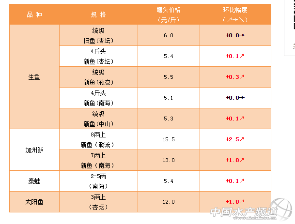 中國水產(chǎn)頻道原創(chuàng)報道, 文/ 珠海海龍 水產(chǎn)前沿 吳佳輝 淡水特種魚:生魚、加州鱸價格皆有上漲,加工廠需求量大 生魚 順德杏壇:舊魚分級2斤上6.0-6.2元,2斤下4.0-4.2元。新魚4斤頭左右5.2-5.8元。本周價格維持穩(wěn)定。季節(jié)轉(zhuǎn)換,天氣多變,魚塘管理不可大意,生魚開春產(chǎn)卵體質(zhì)虛弱,病害較多,建議做足預(yù)防處理工作。 勒流區(qū)域:魚價上漲,禁海時期,各種水產(chǎn)品上漲帶動下生魚也略有上漲。建議調(diào)理好肝腸,改好塘底,緩慢加料。 南海西樵九江:市場中等規(guī)格魚需求較大,走量較多,大魚比例6成左右價格維持在5-5.3元,當(dāng)前處于散春后期甚至散春完畢,餌料系數(shù)偏高,魚體質(zhì)較差,建議做好內(nèi)服增強體質(zhì)。 中山區(qū)域:生魚價格大體穩(wěn)定,中魚爽市價格微漲,新魚2斤上5.8-6元,2斤下4-4.3元,近期加工廠需求中魚量大,推動中魚價格微漲勢頭;目前天氣多變,生魚產(chǎn)后體質(zhì)弱,建議做好消毒改底、內(nèi)服保健工作。 【關(guān)鍵字】:生魚 加州鱸 價格行情 水產(chǎn)養(yǎng)殖 |